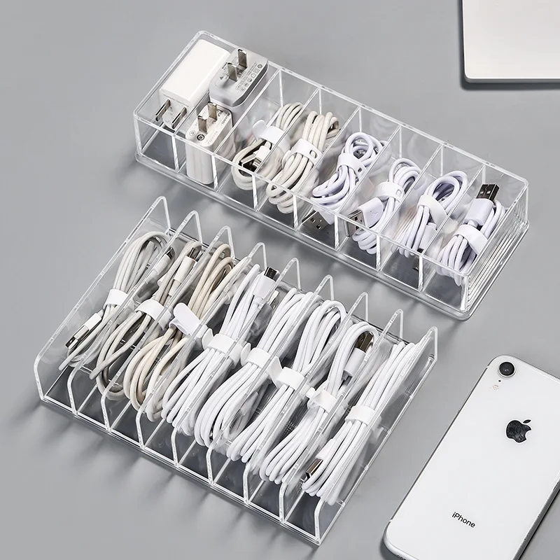 Шкатулка для хранения кабелей USB, настольный органайзер с 8 отделениями, для макияжа, ювелирных изделий, ящик, аксессуары для дома и офиса