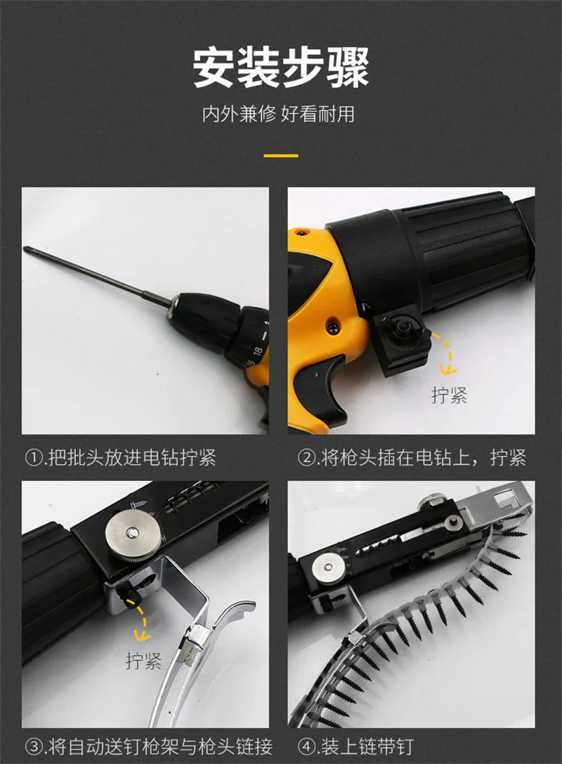 1 шт. цепной ремень винтовой пистолет для ногтей головка автоматический винтовой пистолет для ногтей адаптер для электрической дрели деревообрабатывающий гипсокартон отвертка