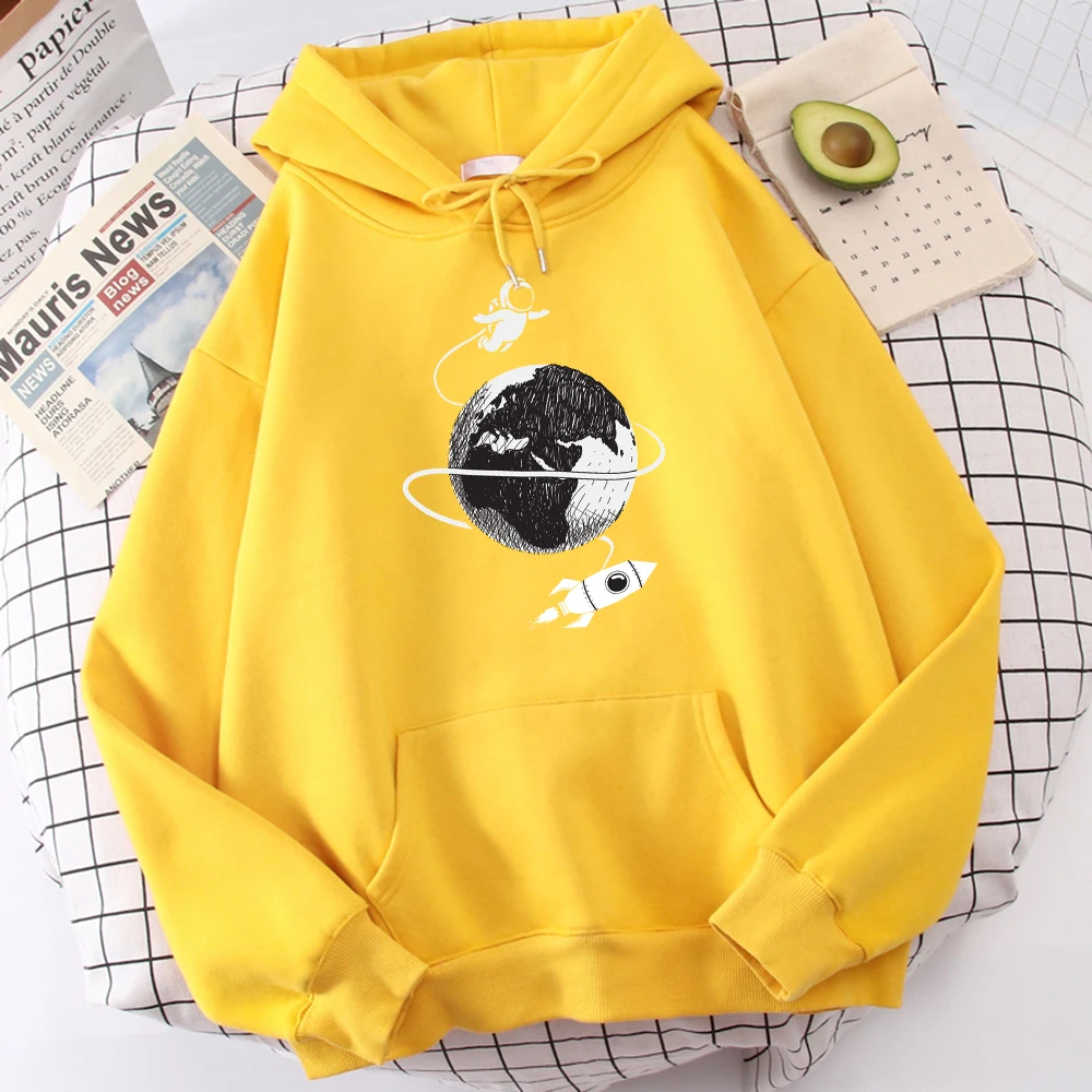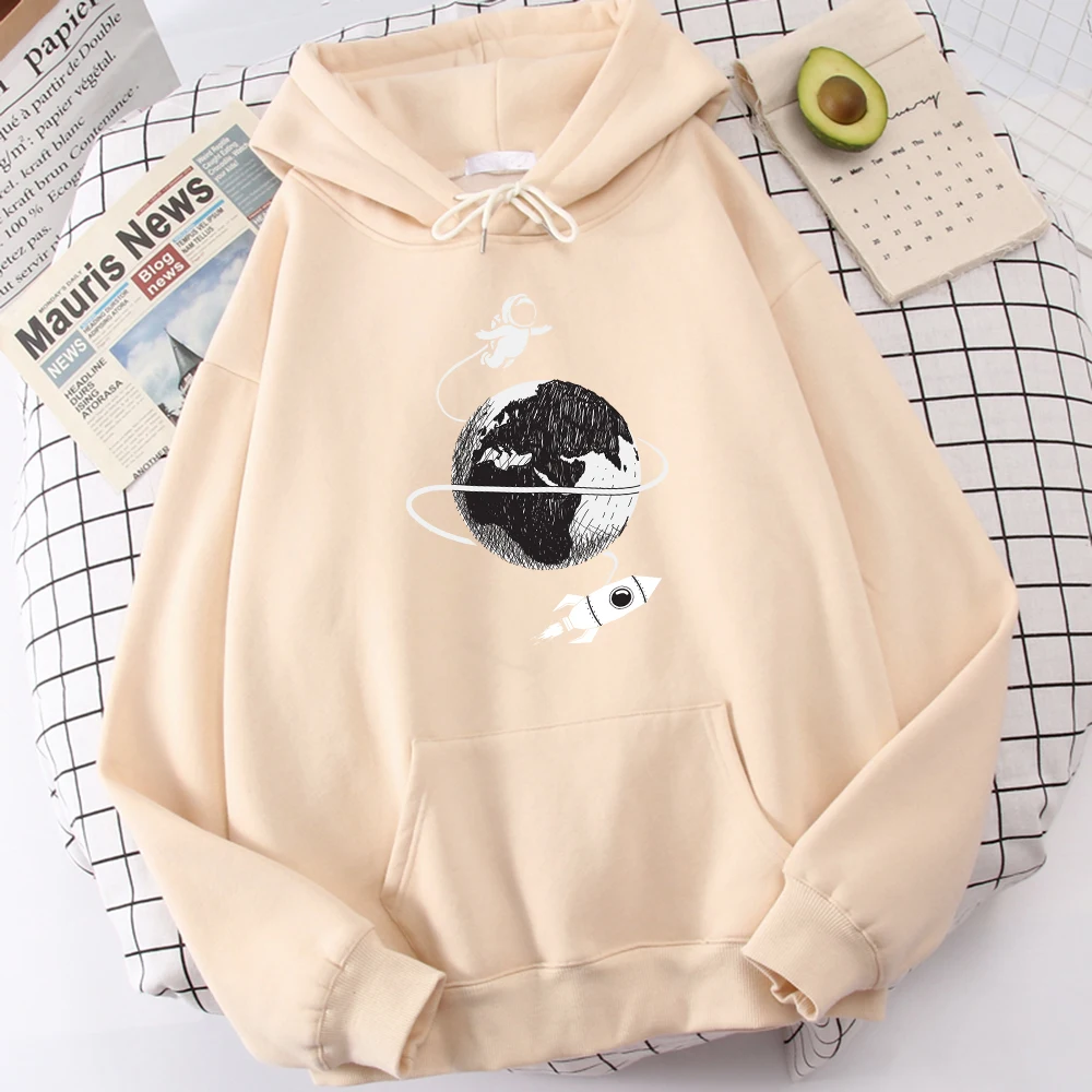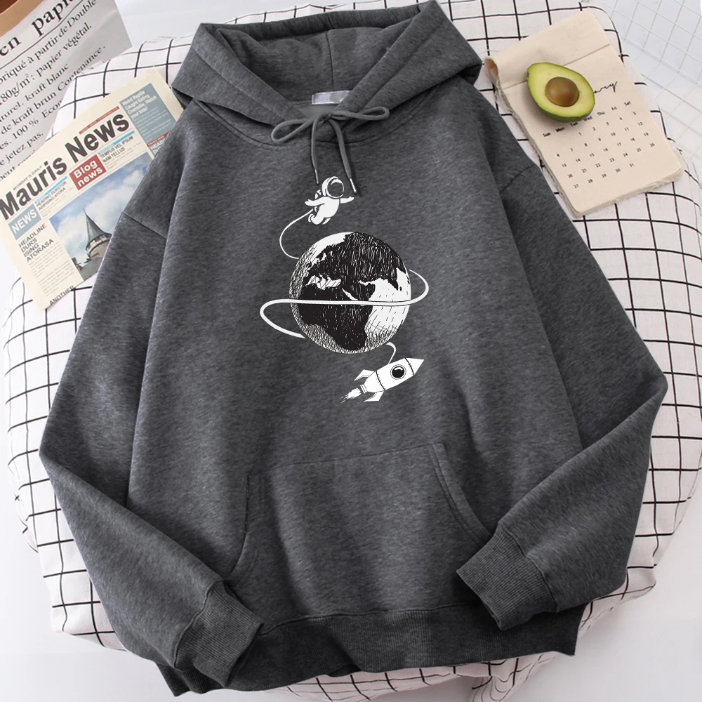 Толстовка Женская флисовая с принтом космонавт, космический корабль, лунная поверхность, хипстерская, Размеры S-Xxl, спортивный костюм в стиле хип-хоп