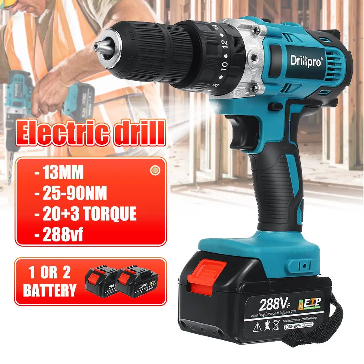 Беспроводная электрическая дрель Drillpro 3 в 1, двухскоростная ударная отвертка, электроинструмент с литий-ионной батареей 15000Amh