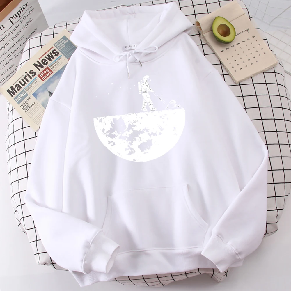 Женская толстовка с капюшоном, принтом космонавт, луна, осень, хип-...