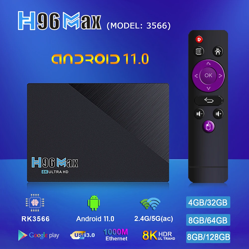 H96 MAX RK3566 2021 Smart TV Box Многоязычный Bluetooth Android 11 8 ГБ ОЗУ Поддержка 64 ГБ 1080p 8K HD Google Play Youtube медиаплеер Поддержка телеприставки мышь и клавиатура