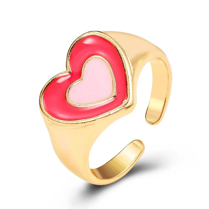 2021 симпатичное Двухслойное кольцо в виде влюбленного сердца кофе двухцветное милое влюбленное сердце капельное кольцо парные соответствующие стандартным ювелирным изделиям
