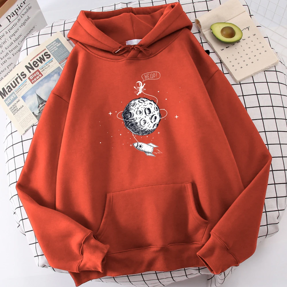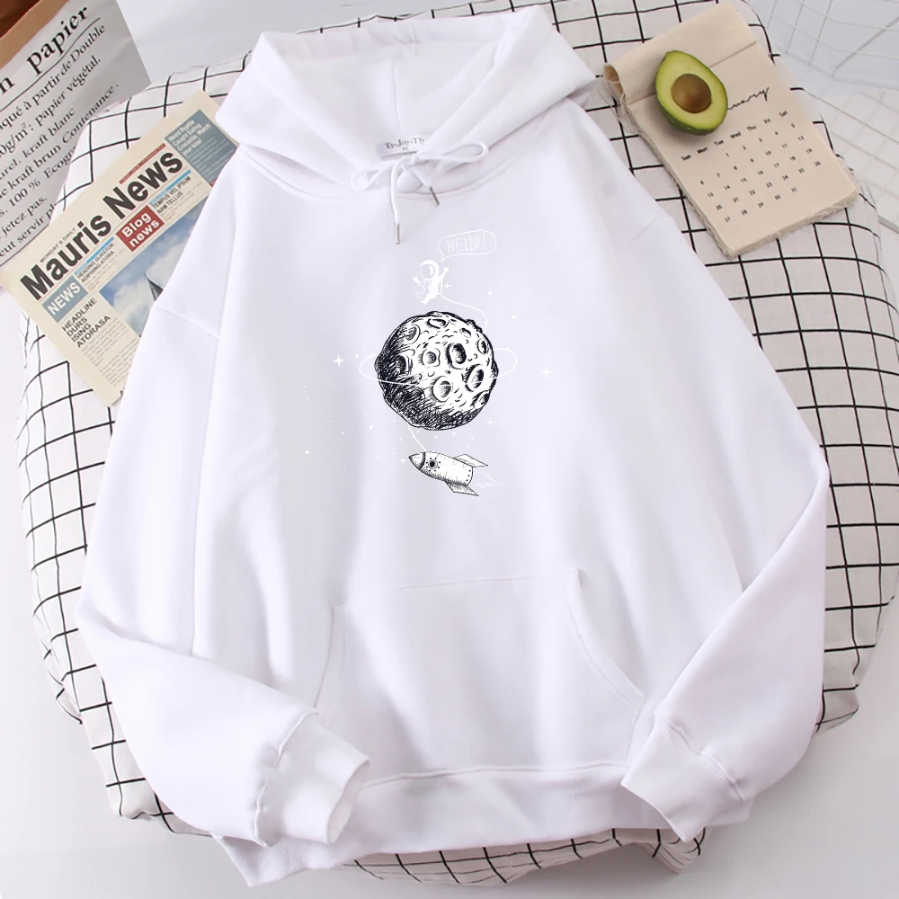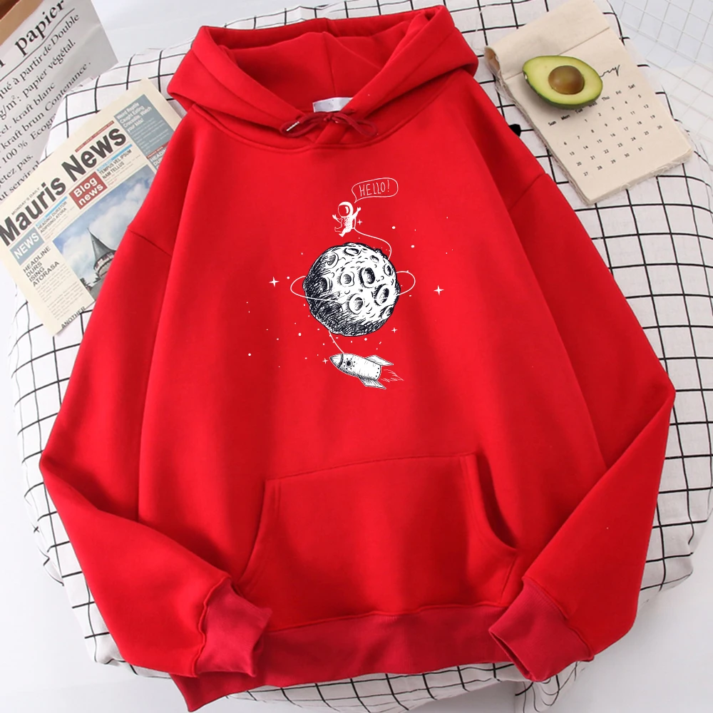 Женская толстовка с капюшоном, с принтом космонавт, космический корабль, лунная поверхность, уличная Толстовка большого размера, осенняя уличная одежда в стиле хип-хоп с меховой подкладкой, Размеры S-Xxl