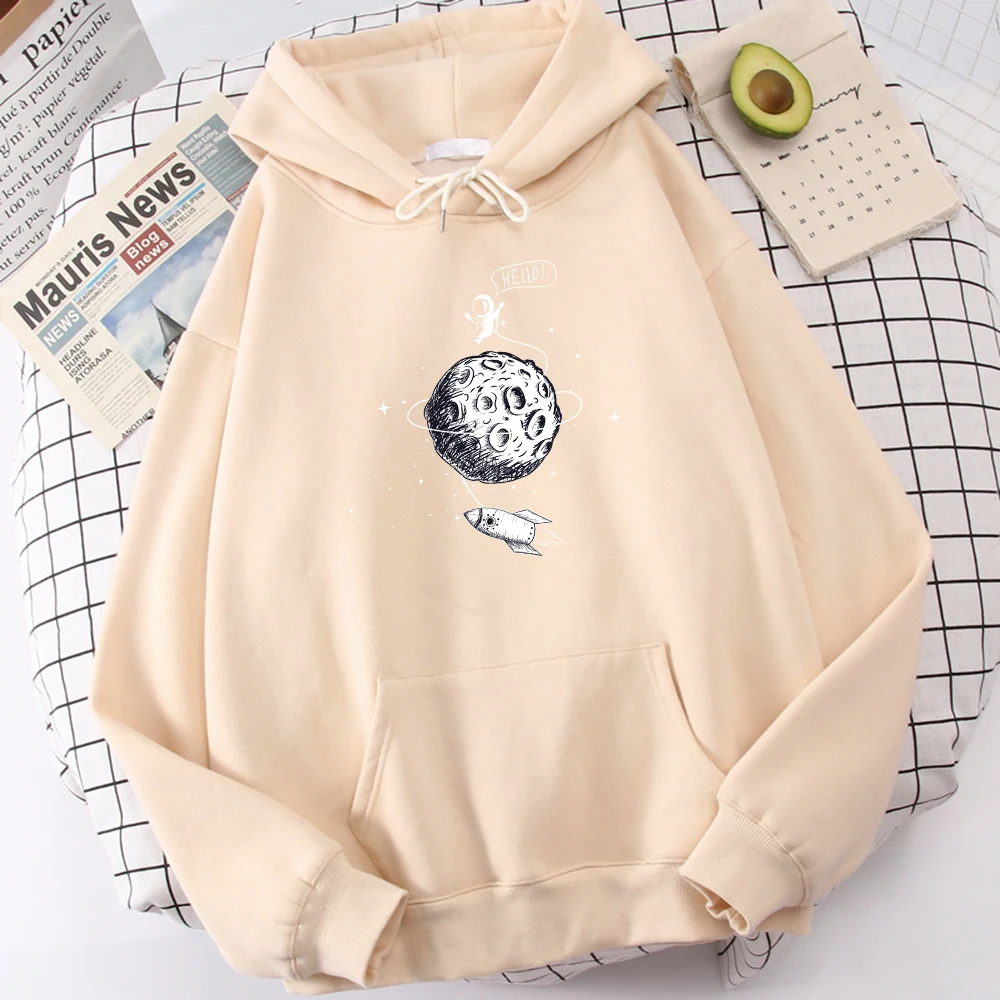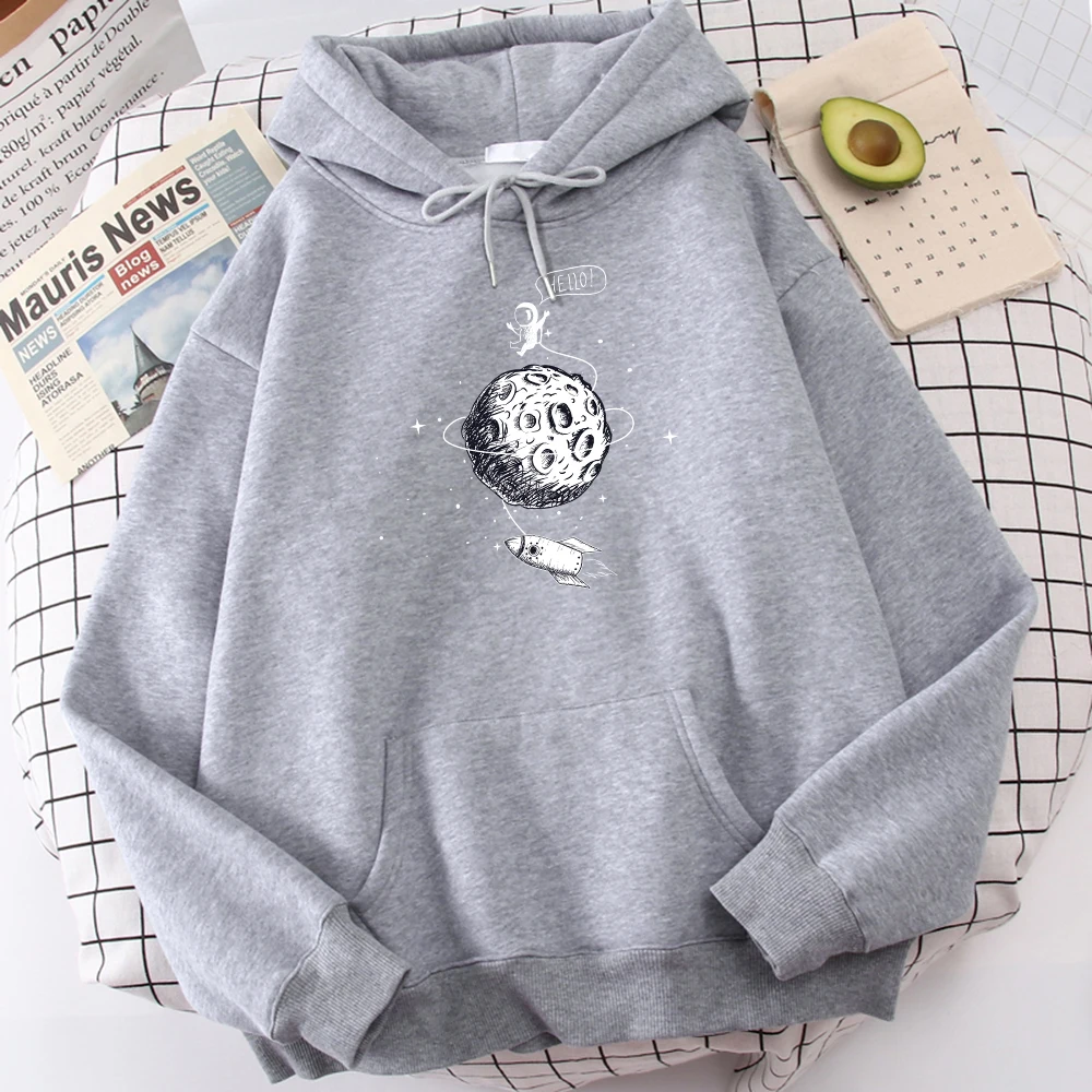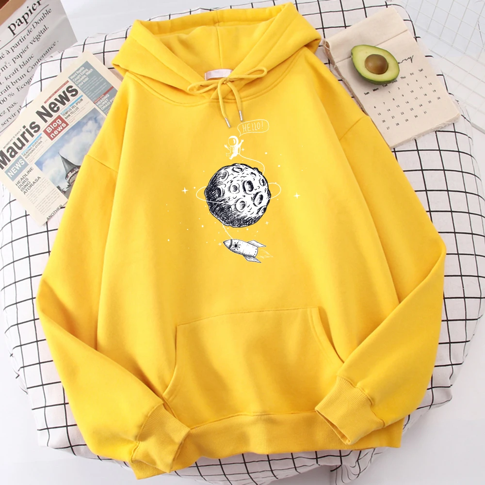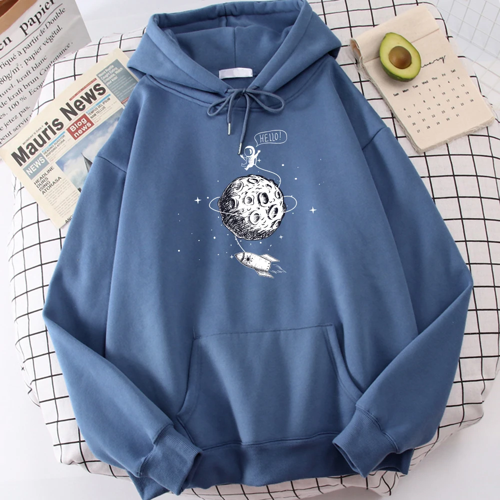 Женская толстовка с капюшоном, с принтом космонавт, космический корабль, лунная поверхность, уличная Толстовка большого размера, осенняя уличная одежда в стиле хип-хоп с меховой подкладкой, Размеры S-Xxl