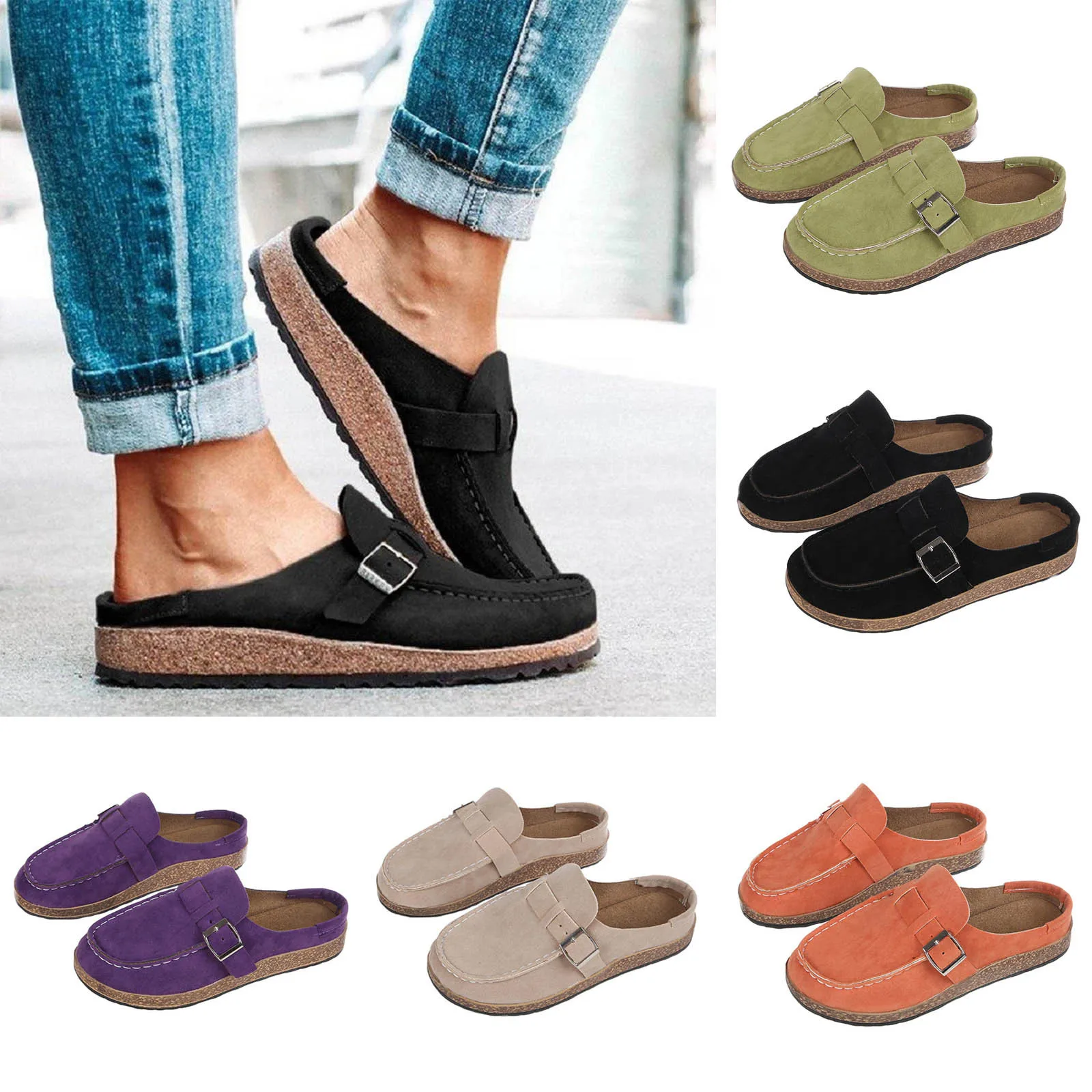 Модные сандалии для женщин, Летняя женская обувь на плоской подошве из нубука с ремешком и пряжкой