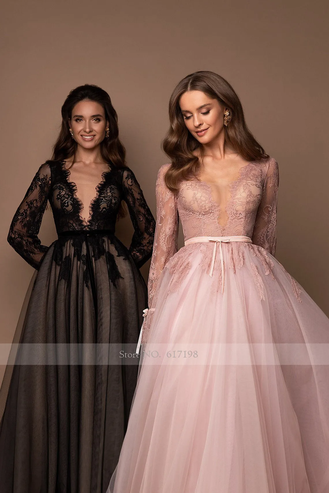 Женское кружевное платье-трапеция с V-образным вырезом, длинным рукавом и поясом
