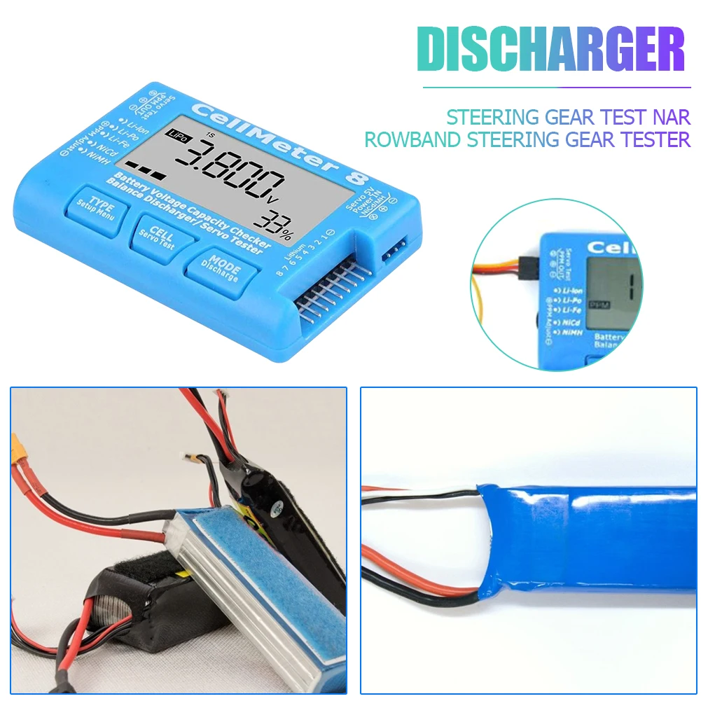 ЖК-цифровой измеритель емкости аккумулятора, прибор для проверки емкости батареи, Ру CellMeter8 2-8S 4-8S Servo LiPo Li-lon NiMH, тестер батарей, аксессуары
