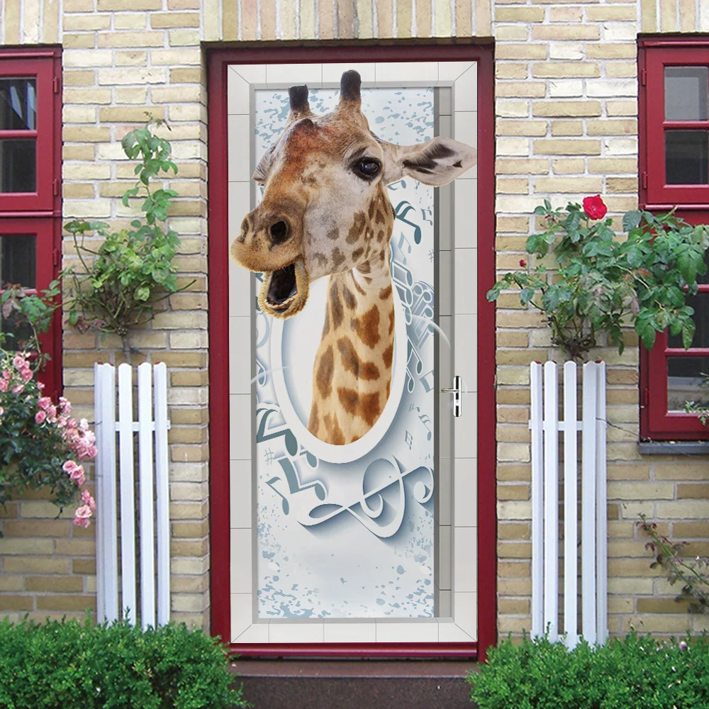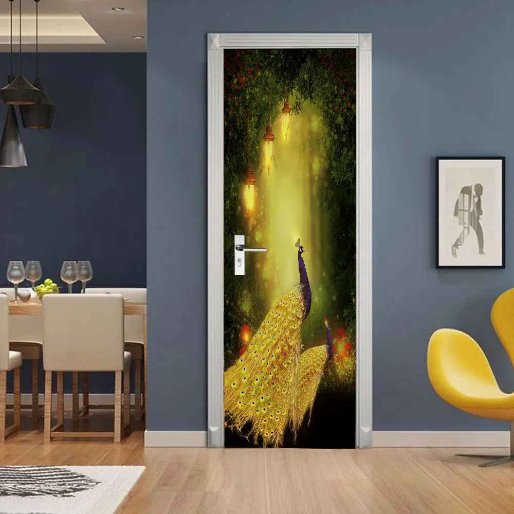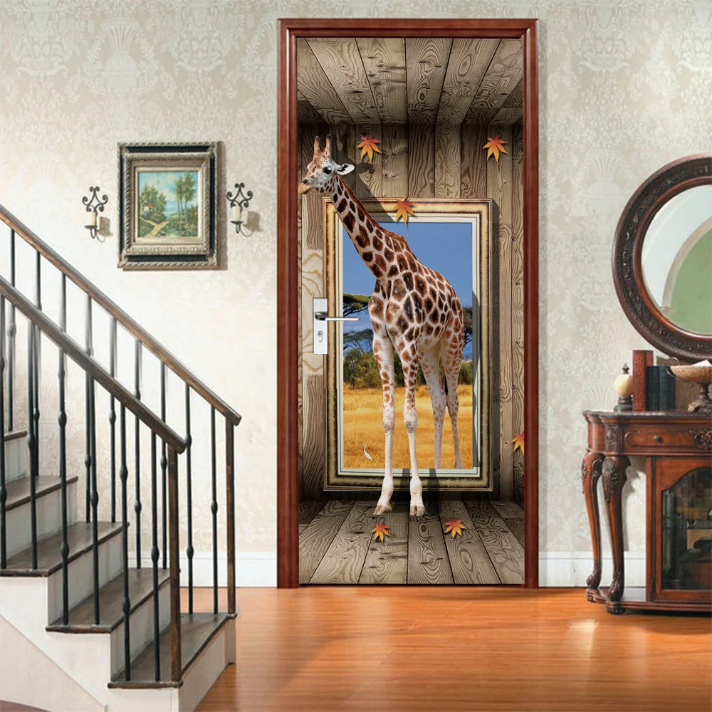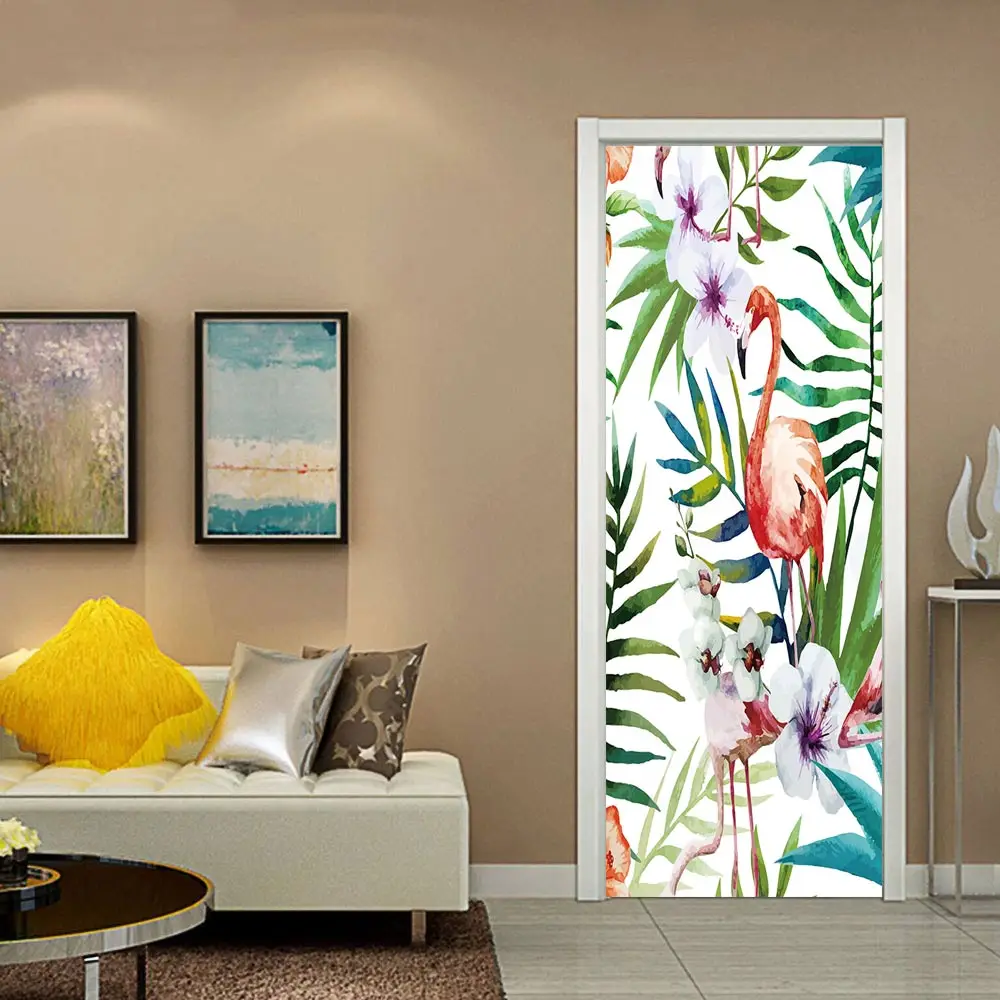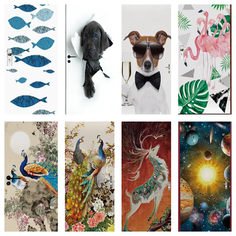 Название: виниловые водонепроницаемые наклейки на дверь с изображением павлина и собаки оленя, расписанные вручную фламинго, 3D обои для дверей Adesivi Per Porte
