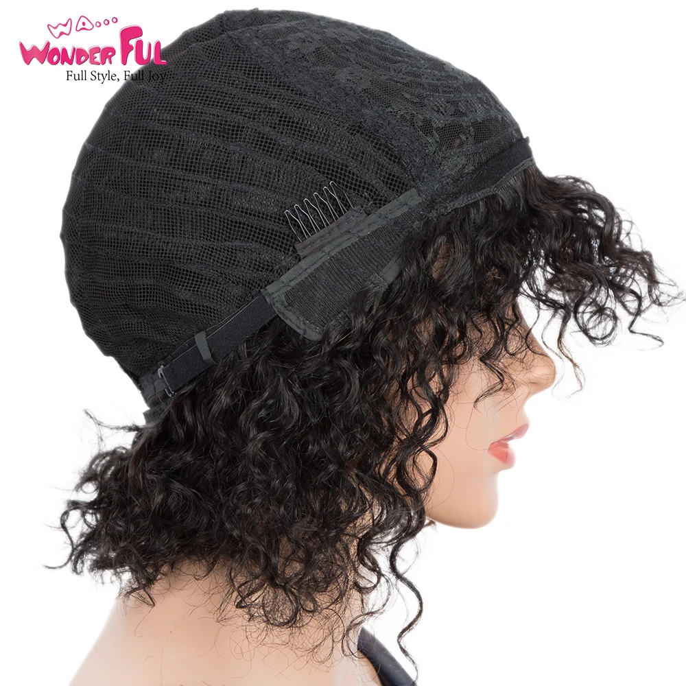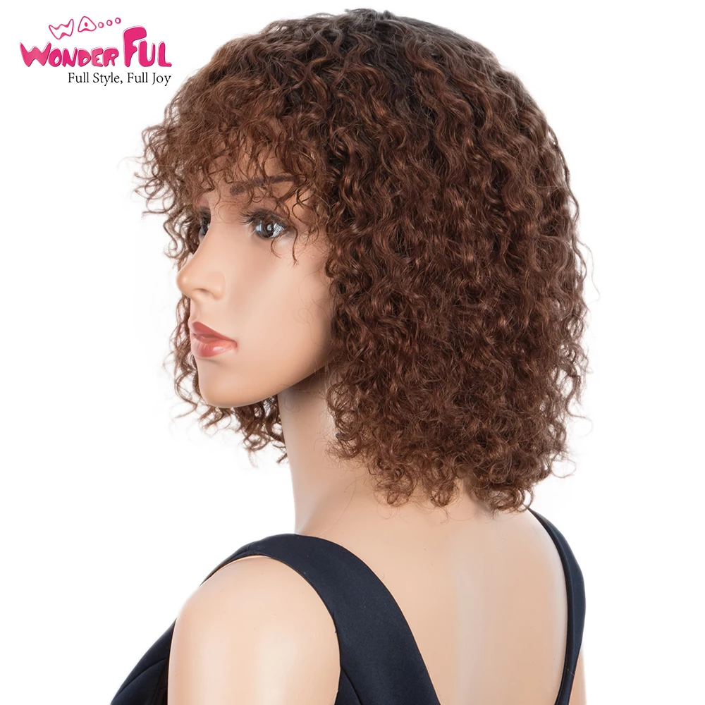 Замечательные модные повседневные кудрявые человеческие волосы парики короткие боб с челкой парики Цветные Волнистые Волосы Remy парики машинное изготовление