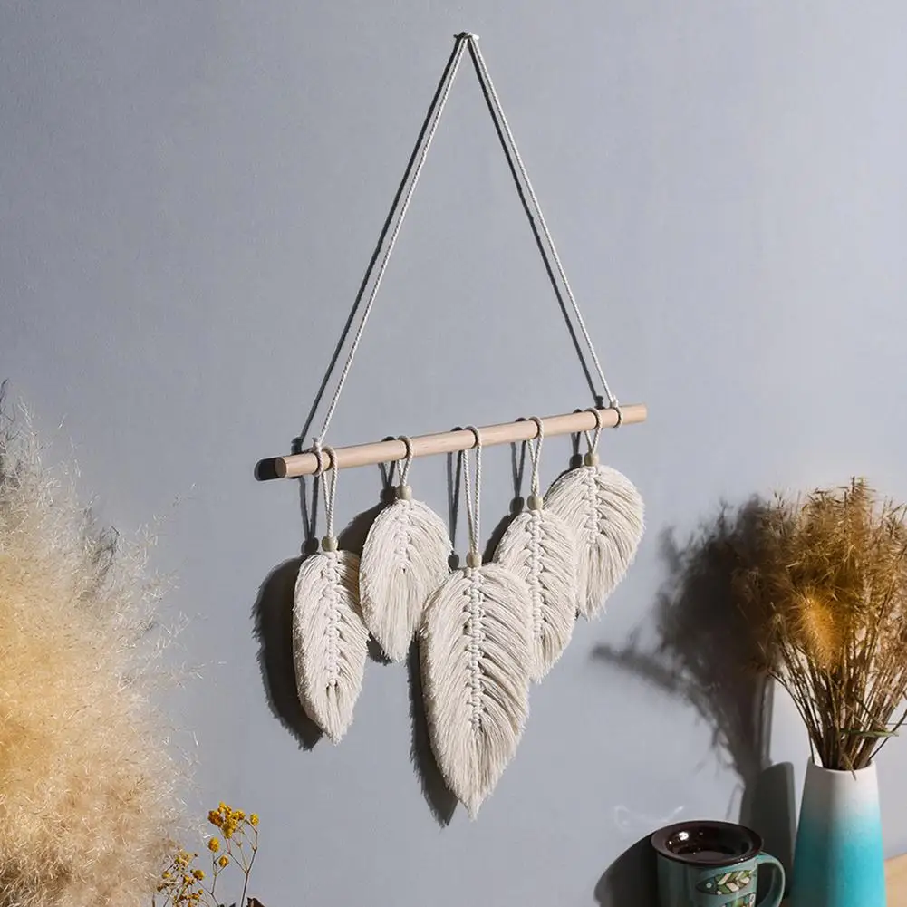 Ручная работа макраме настенные Висячие перья хлопок тканые листья гостиная изголовье Двери крыльца вешалки Бохо Декор настенный гобелен