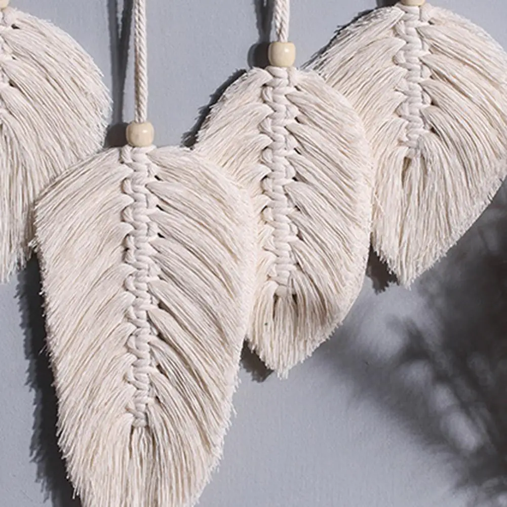 Ручная работа макраме Настенное подвесное перо хлопчатобумажные тканые листья для гостиной подвесные висячие двери в стиле бохо Декор настенный гобелен