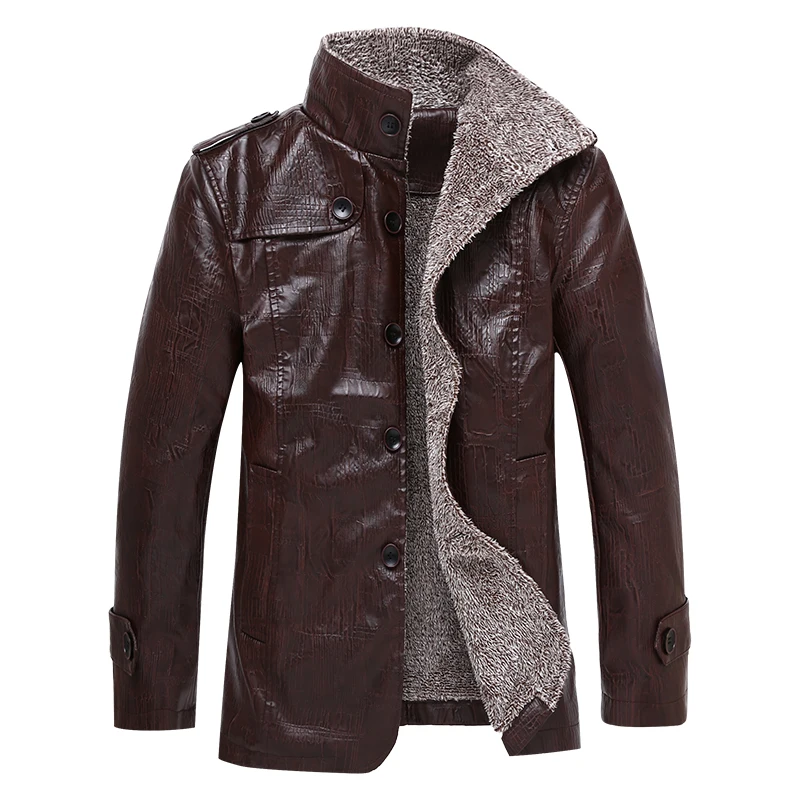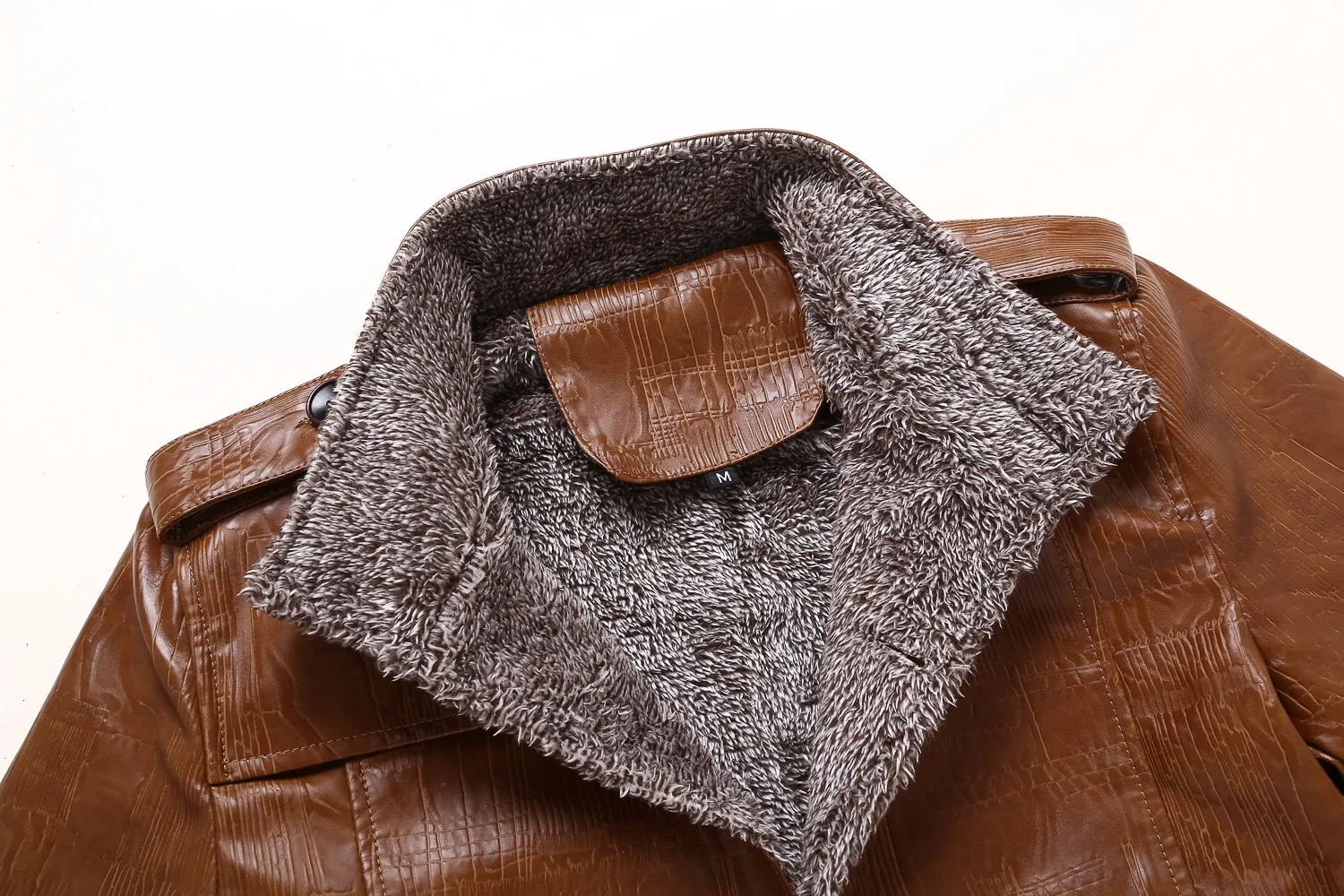 Куртка мужская из искусственной кожи, длинная стильная ветровка с меховой подкладкой, толстая флисовая верхняя одежда с воротником-стойкой, 4XL
