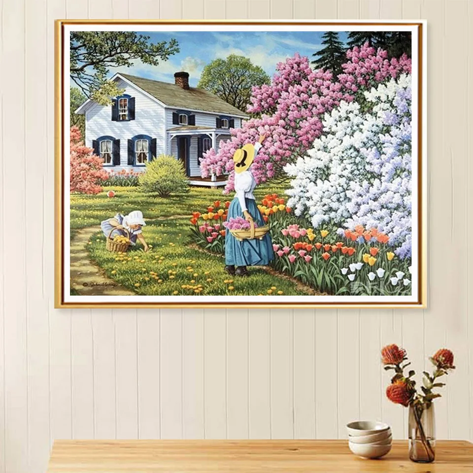 Алмазная живопись 5D "сделай сам", пейзаж, усадьба, весна, Набор для вышивки крестом, Алмазная мозаика, картина, украшение для дома, подарок