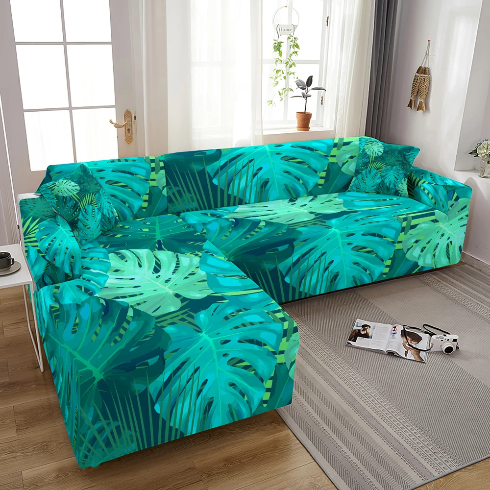 Эластичные Чехлы для дивана с тропическими листьями для гостиной, э...