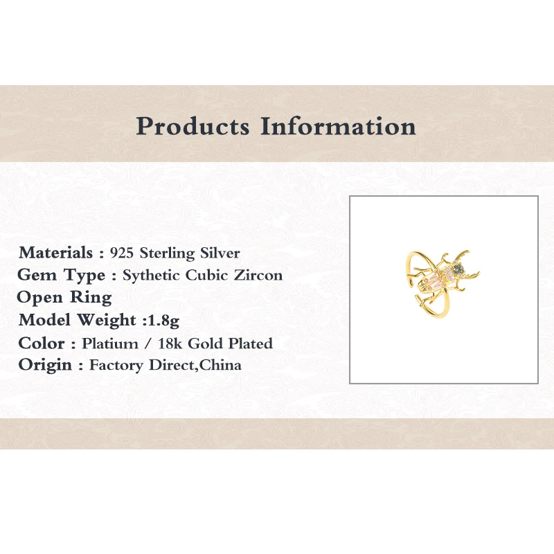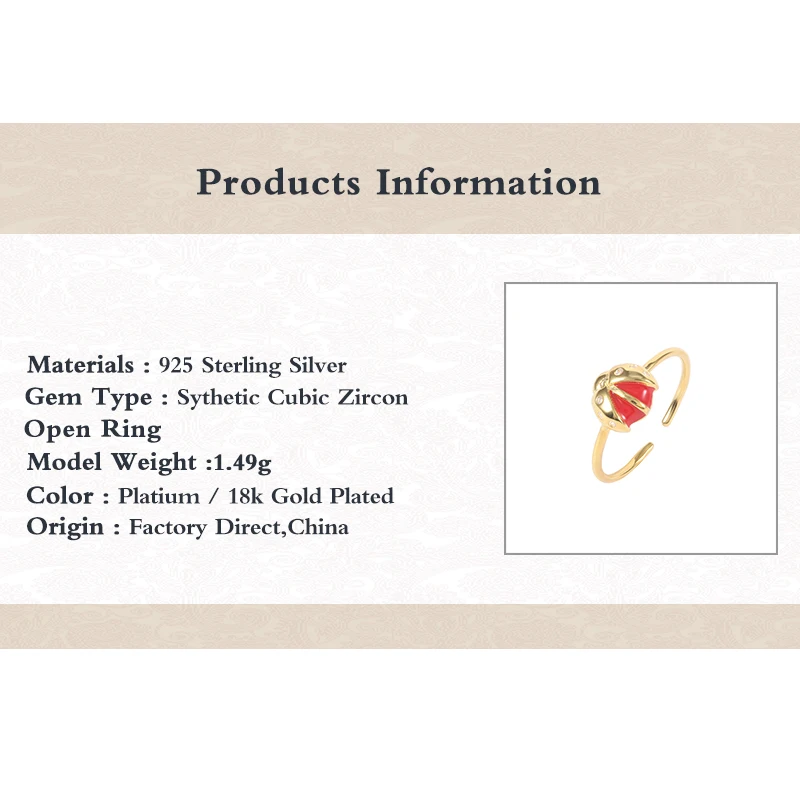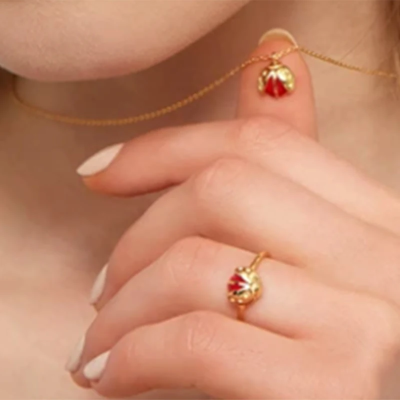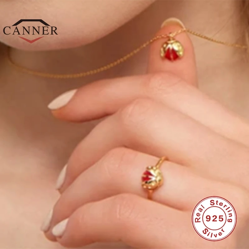 Женское и мужское регулируемое обручальное кольцо с божьей коровкой, из серебра 925 пробы