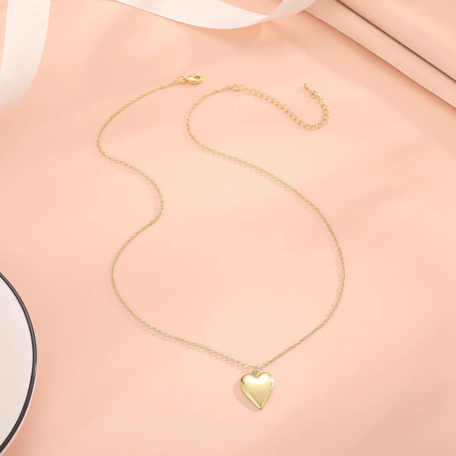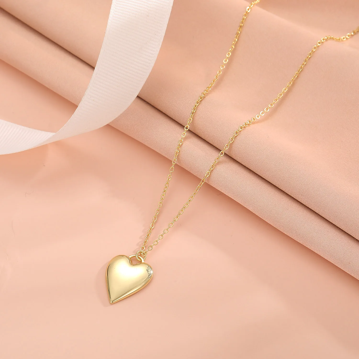 Изящная изящная милая маленькая подвеска в форме сердца из 14-каратного золота, классическое Simle простое эффектное ожерелье, ожерелье, подарок для женщин