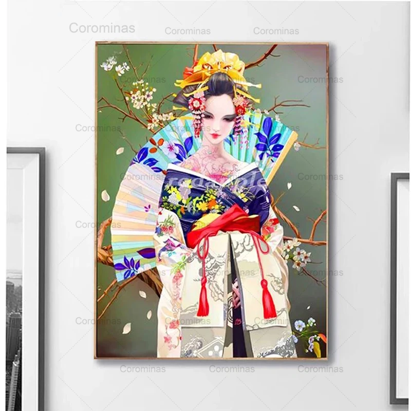 Алмазная живопись 5D сделай сам, японский красавичный веер, полноразмерная круглая ручная вышивка крестиком, рукоделие, украшение для гостиной