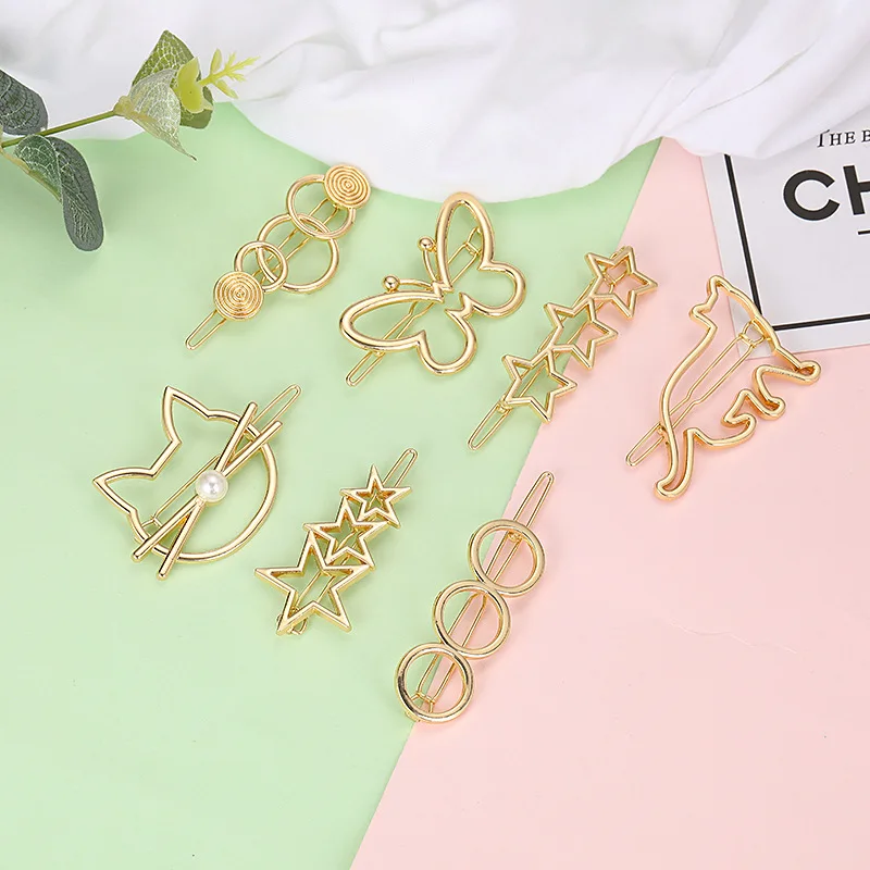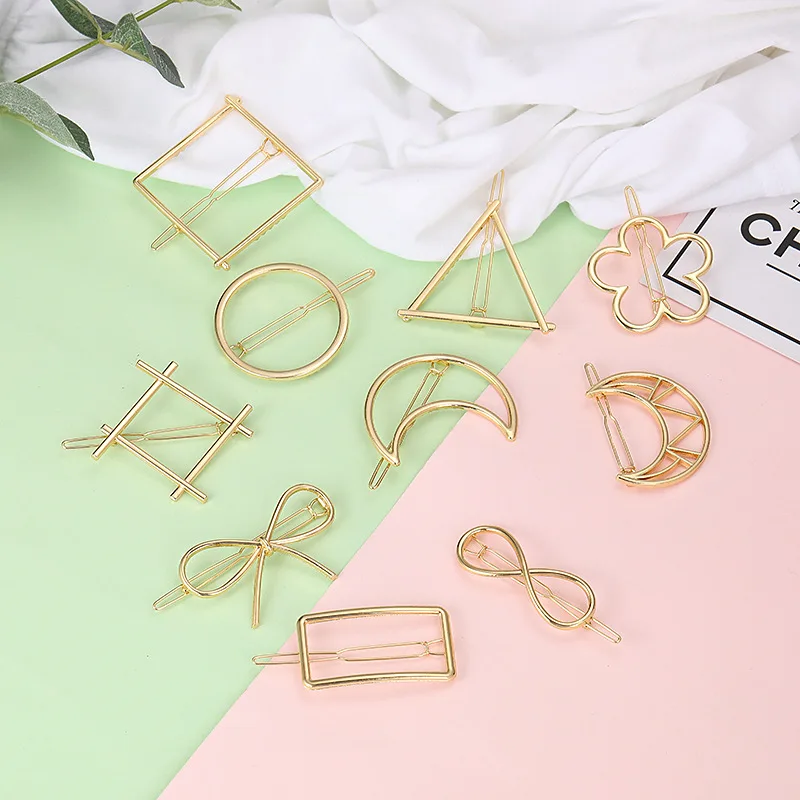 Металлическая заколка для волос, модный зажим геометрической формы, в форме треугольника, луны, круга, аксессуары для волос