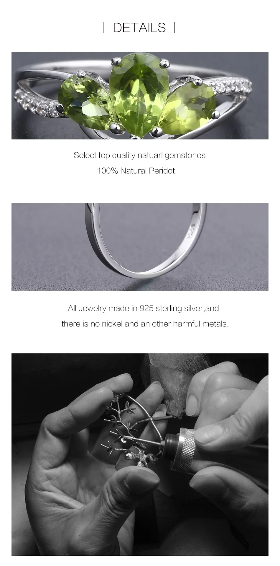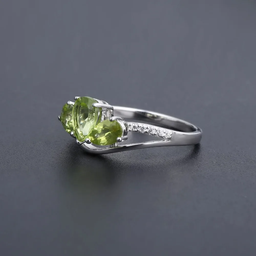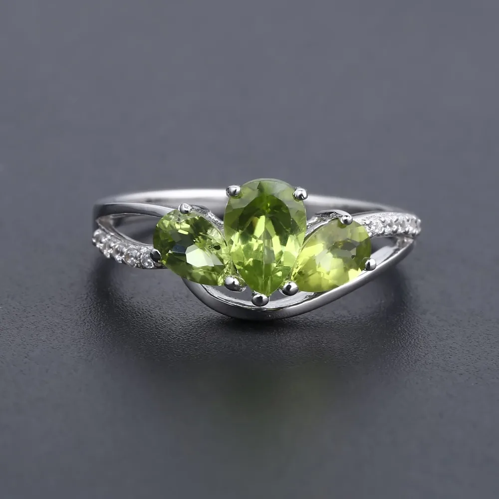 Женское кольцо из серебра пробы, с натуральным зеленым перидотом