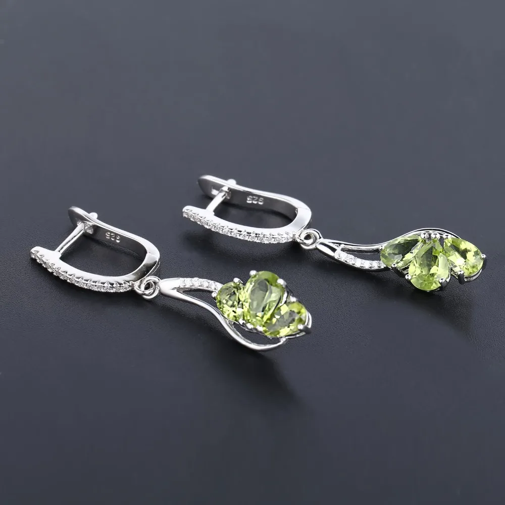 Серьги-кольца женские из серебра 925 пробы с натуральным зеленым Перидотом