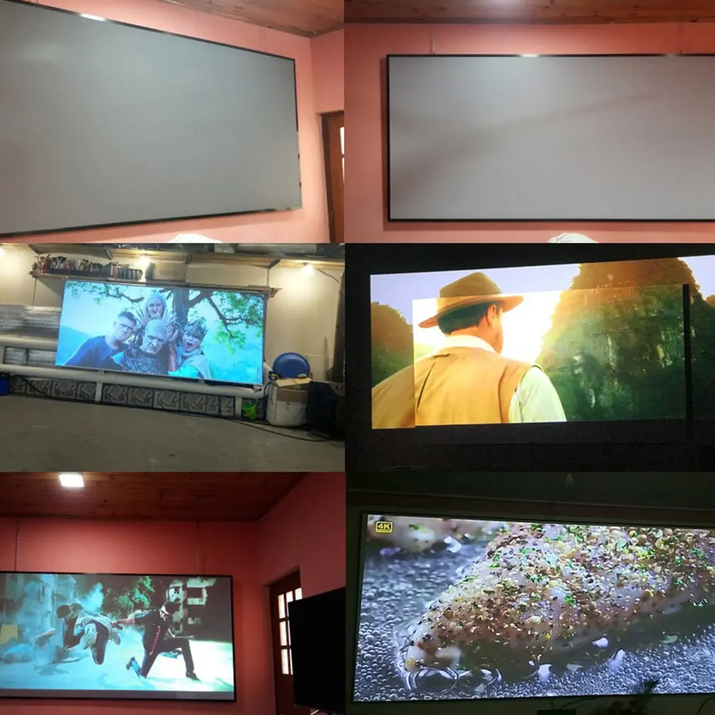 1. Внутри и снаружи: Поддержка передней и задней проекции, хороший эффект проекции. Подходит для наружных походных фильмов, уличных кинотеатров и домашних кинотеатров.