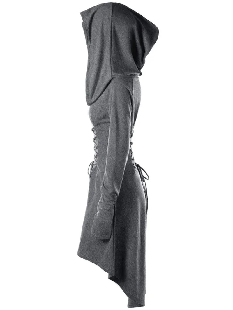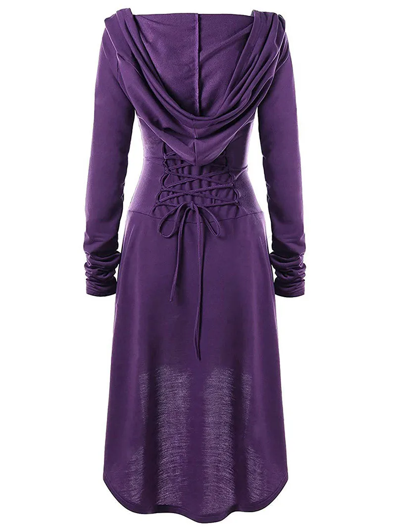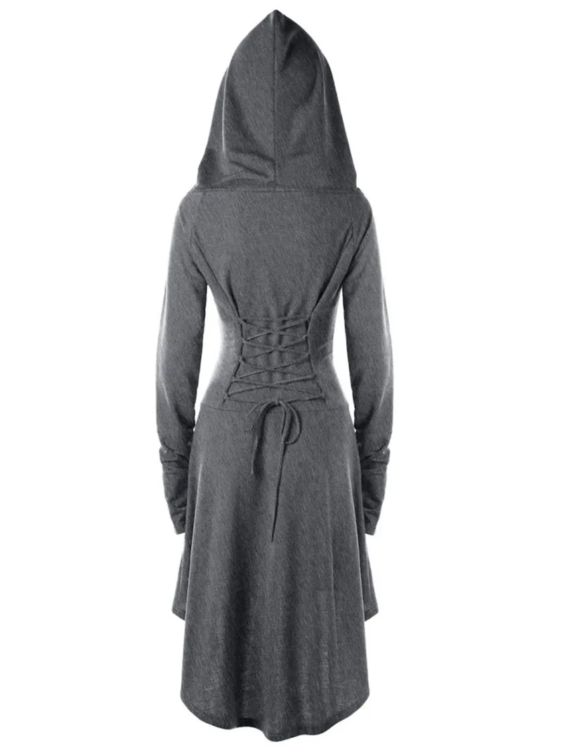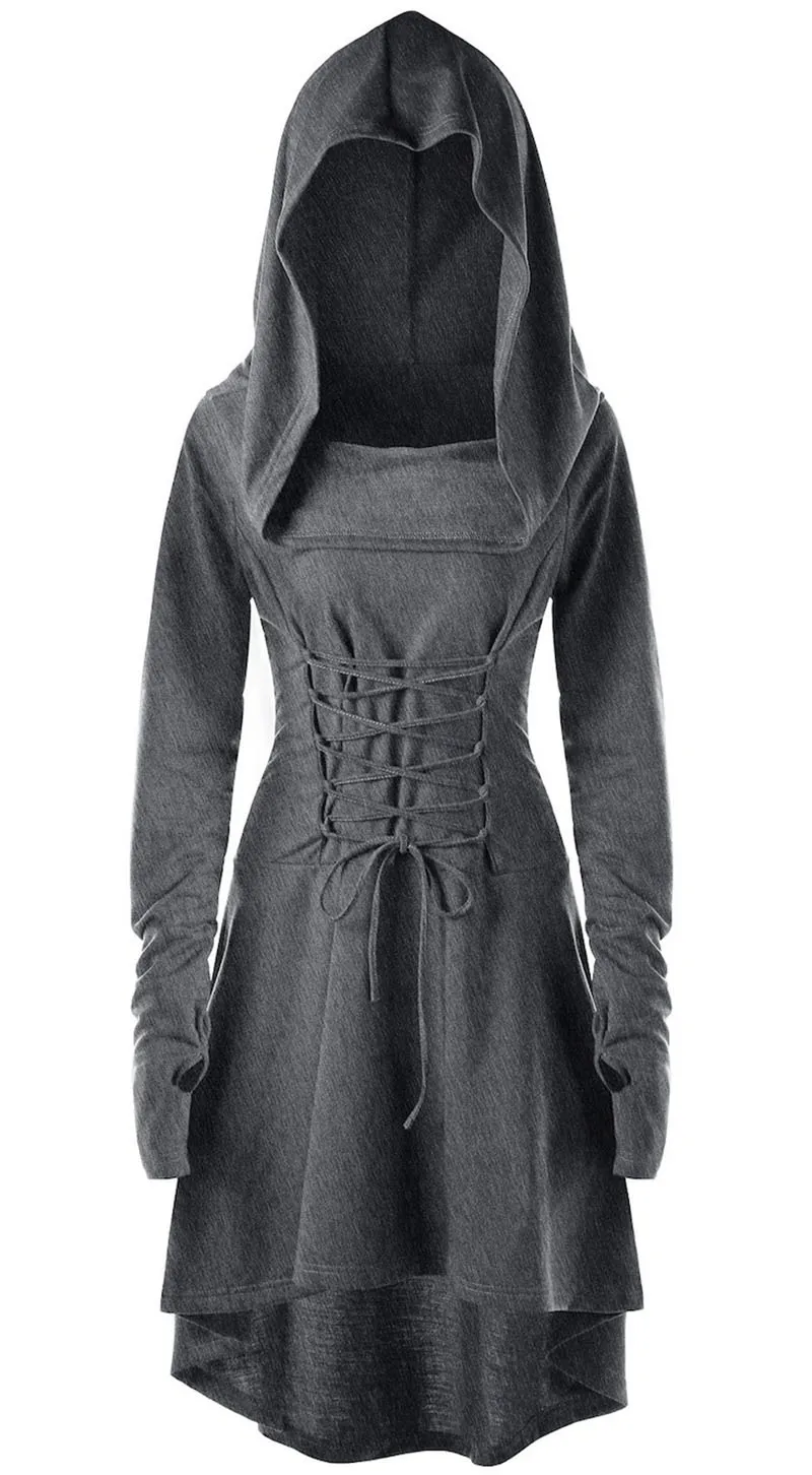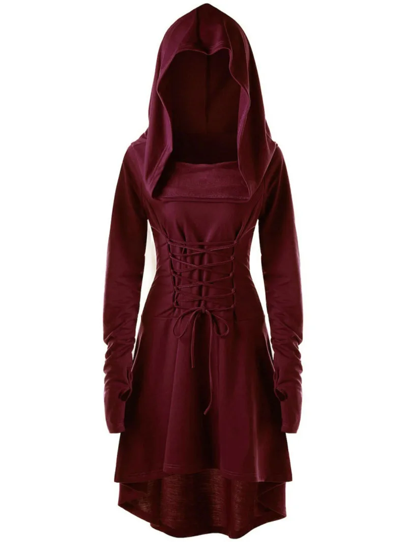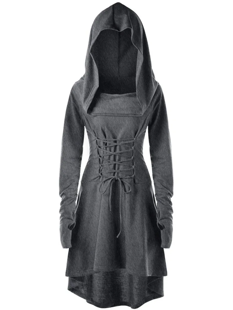 Женское платье с капюшоном, готическое платье в средневековом стиле с высоким низким вырезом и шнуровкой, мини-платье на Хэллоуин