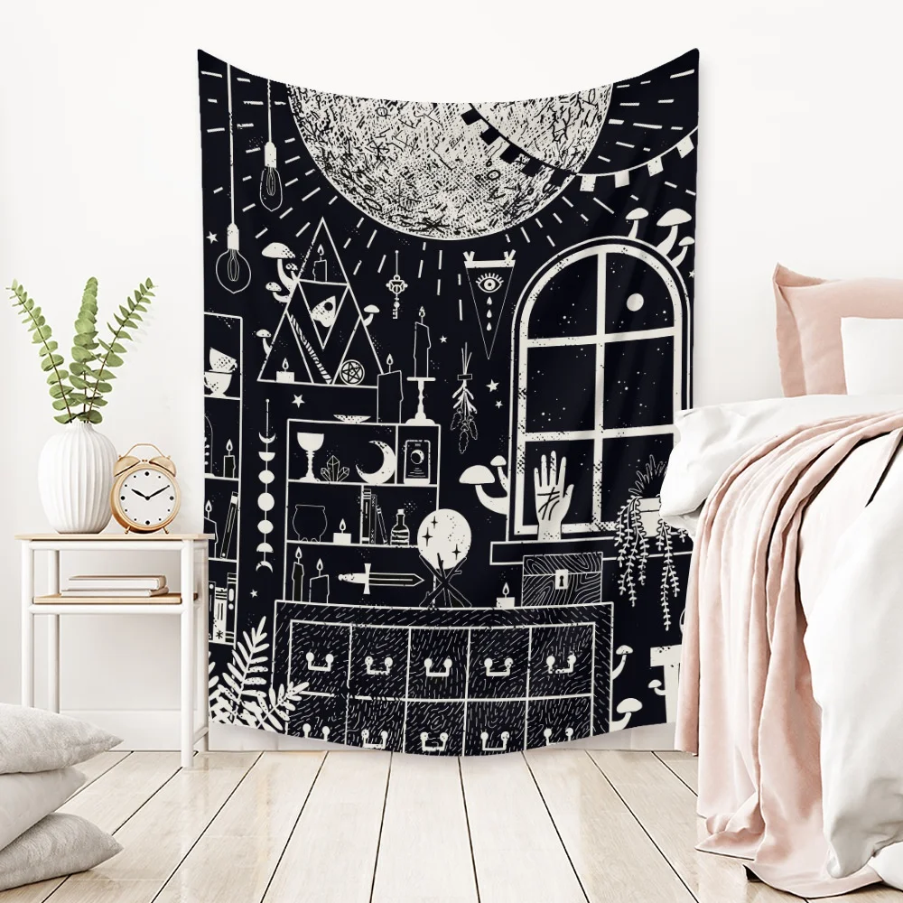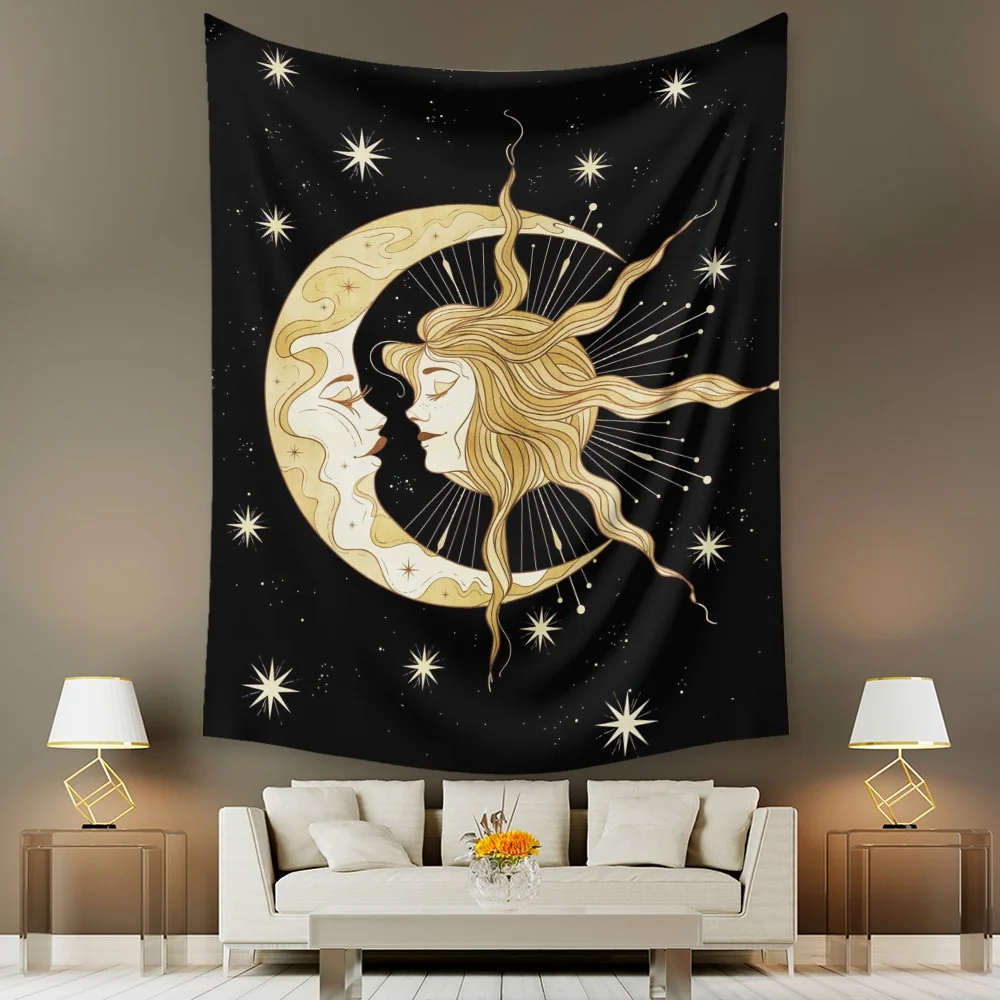 Гобелен с черепами волшебника, солнечные ирисы, солнце и луна, настенное украшение, звезда, облако, таро, домашний декор для комнаты, спальни