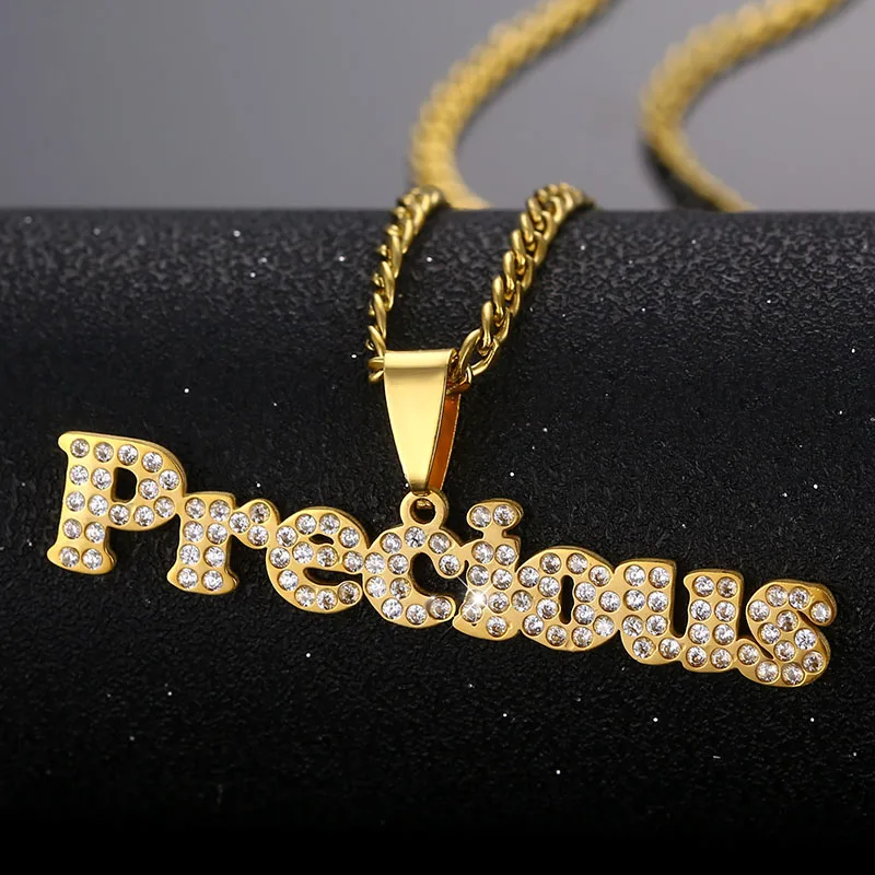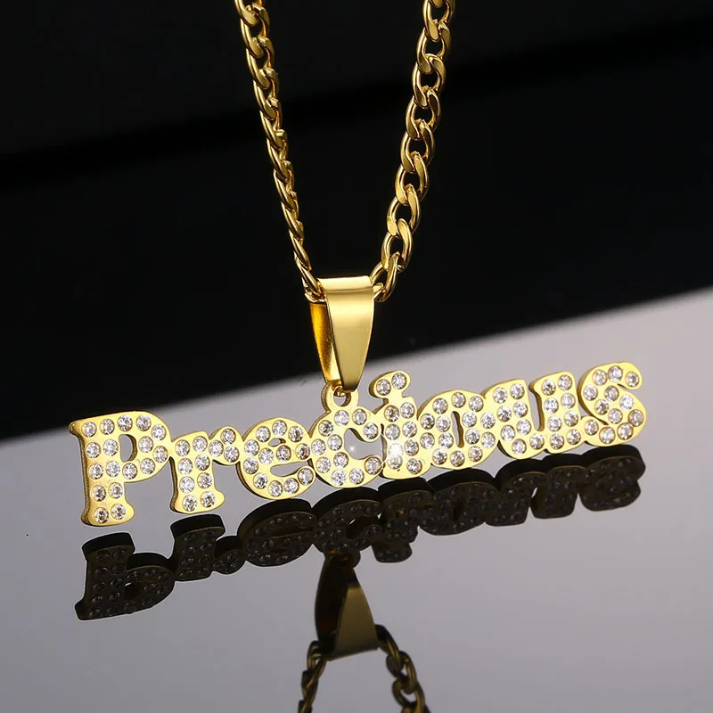 Индивидуальное ожерелье с именем из бриллиантов на заказ для мужчин и женщин, модная кубинская цепочка 5 мм из нержавеющей стали под золото на заказ, кулон, ювелирные изделия