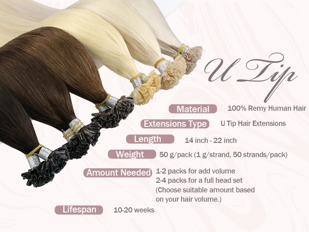 Материал: 100% Человеческие волосы RemyТип наращивания: u-образные накладные волосыДлина: 14-22 дюймаВес: 50 г/упак. (1 г/прядь, 50 прядей/упаковка)Необходимое количество: 1-2 упаковки для добавления объема2-4 упаковки для комплекта с полной головкой(Выберите подходящее количество на основе объема волос.)Срок службы: 10-20 недельФорма волос: шелковистые прямые волосыЦвет волос: все цвета s сейчас в наличии, если вы хотите заказать другой цвет s, не стесняйтесь обращаться к нам.Время доставки: Доставка в течение 72 часов, любые проблемы или потребности, отправьте нам сообщение напрямую.Условия доставки: доставка через почтовое отделение, DHL, FedEx, экспресс-доставка