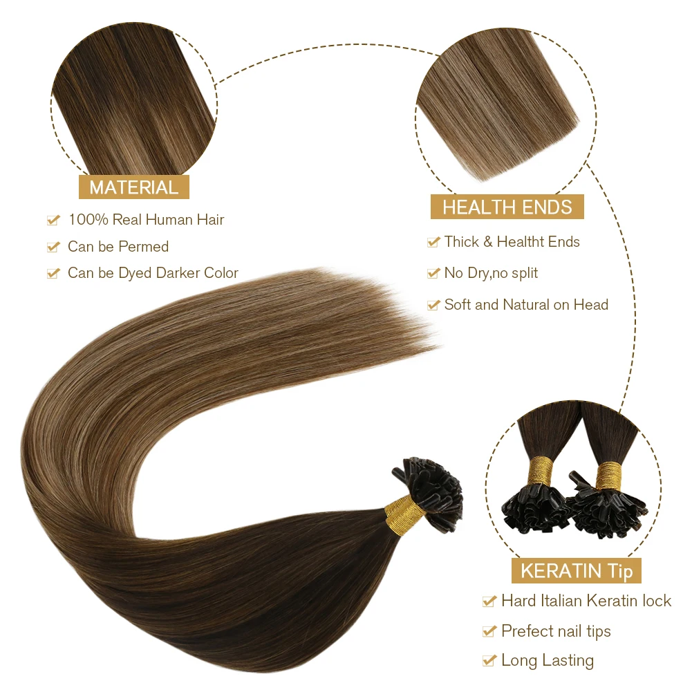 Удлинители волос 6 цветов Ugeat с U-образными кончиками, 14-24 дюйма, 100% натуральные волосы без повреждений, натуральные волосы, предварительно скрепленные волосы для наращивания, 1 глокон