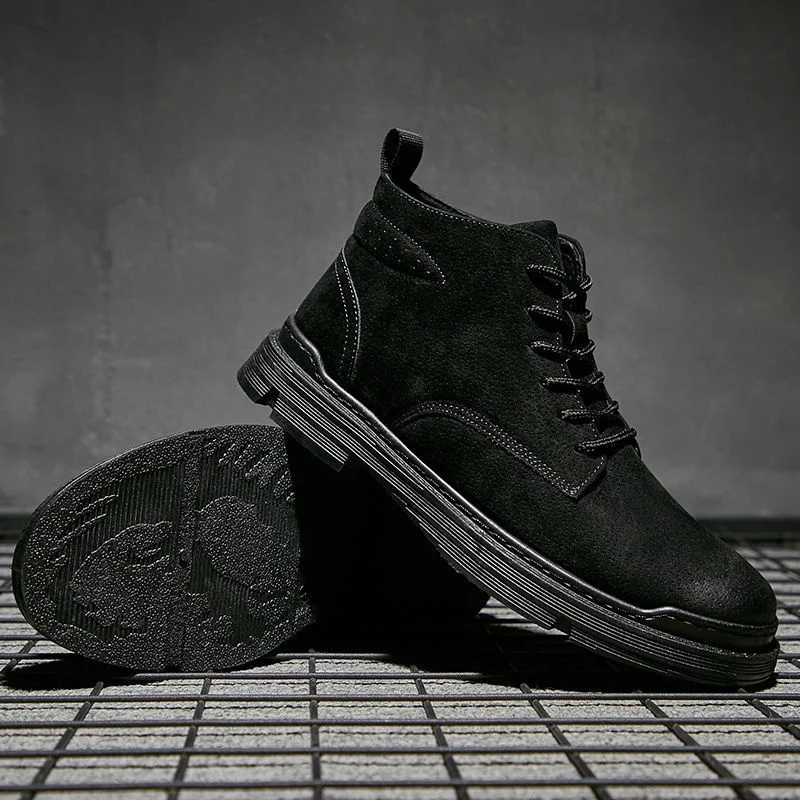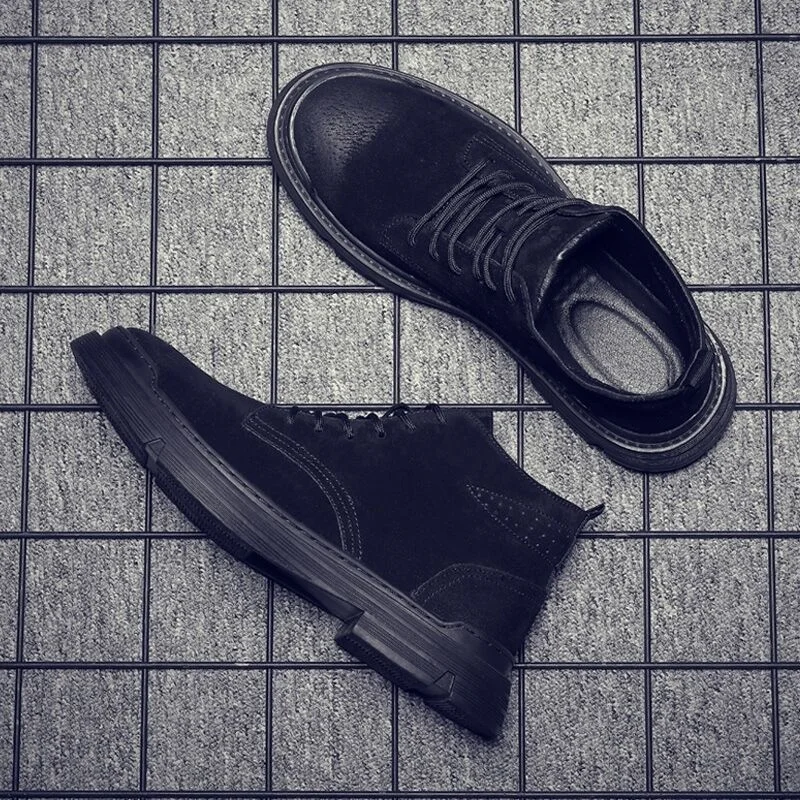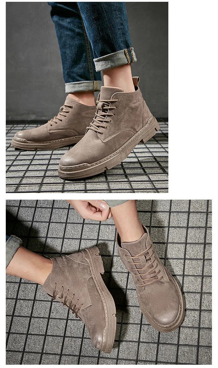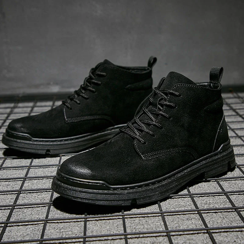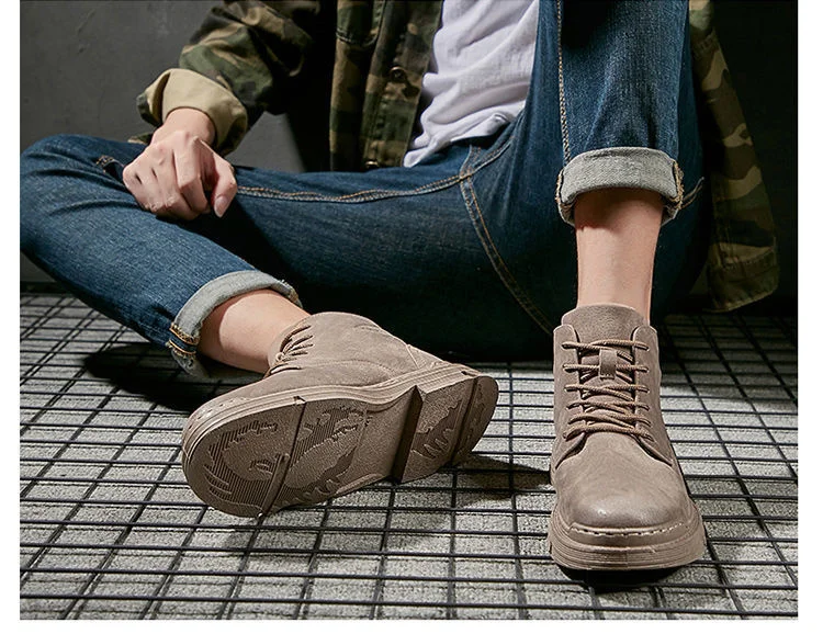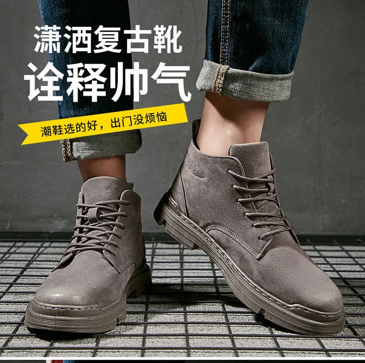 [Возвратная Упаковка Груза] Осенняя мужская обувь новые зимние мужские Ботинки Martin Корейская мужская обувь с высоким берцем Мужские ботинки в стиле ретро армейские ботинки