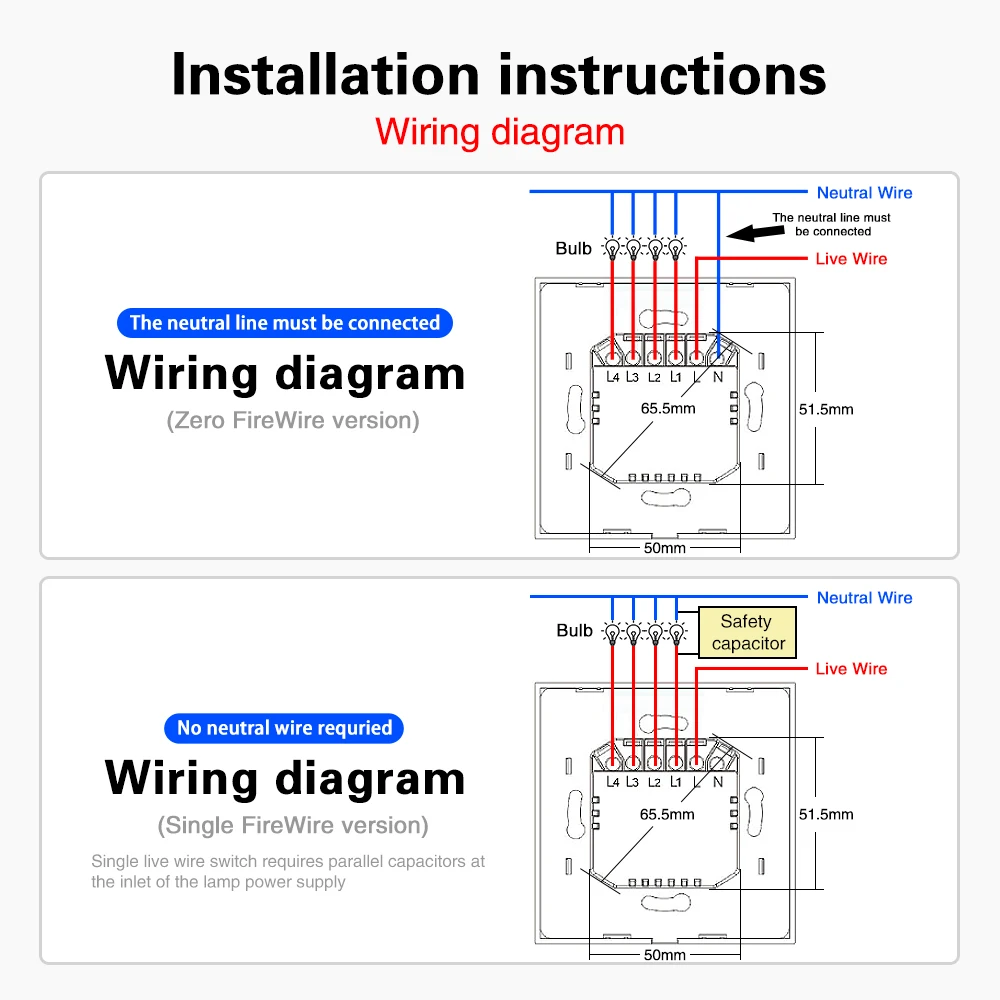 Нейтральное управление проводом и подключение провода без необходимости конденсатораУправление живым проводом необходимо добавить конденсатор