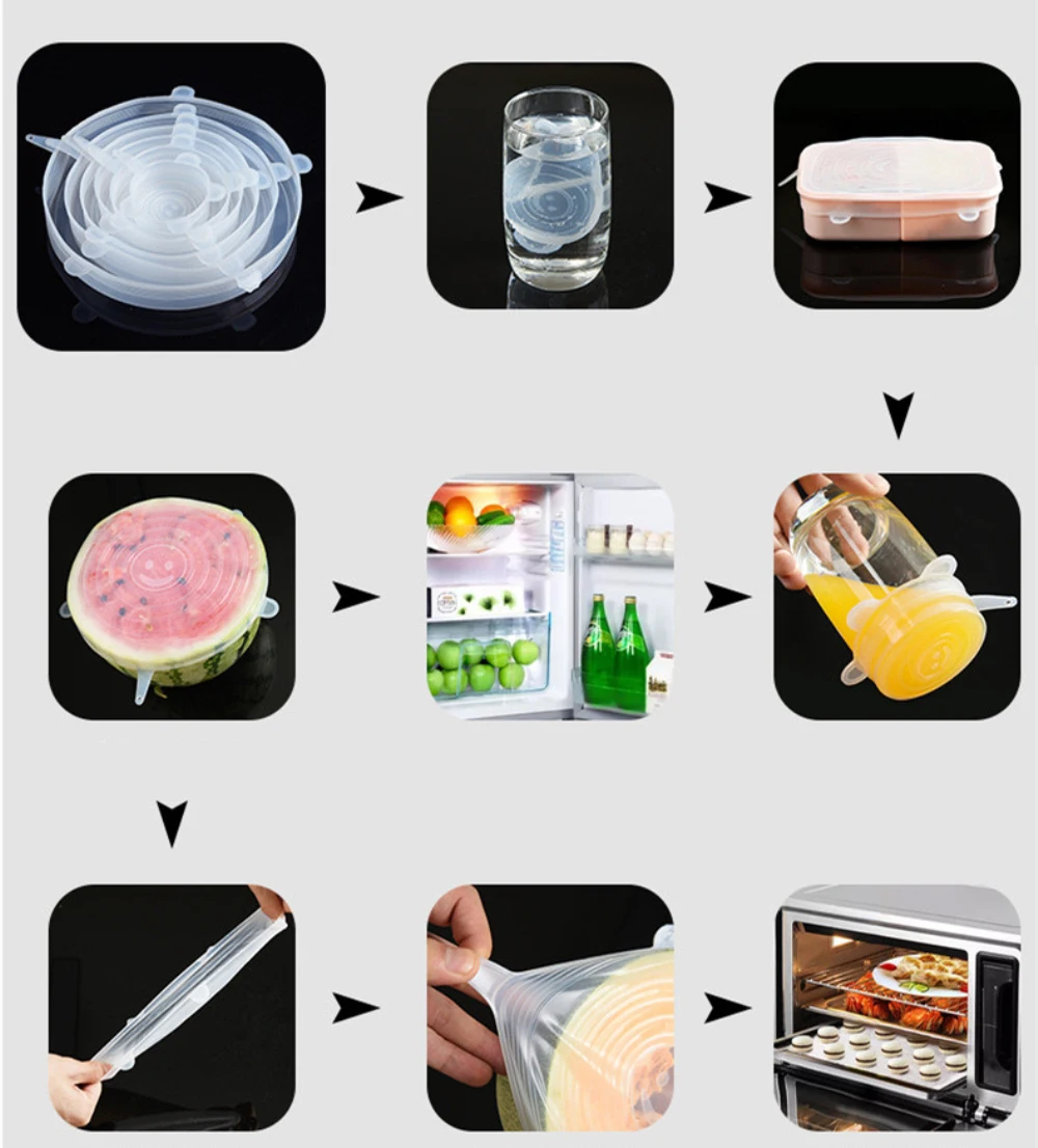 Это очень практичная и полезная вещь. Эластичный, легко чистить и хранить. Вам не придется терять пластиковую фольгу, чтобы покрыть вашу еду в холодильнике.