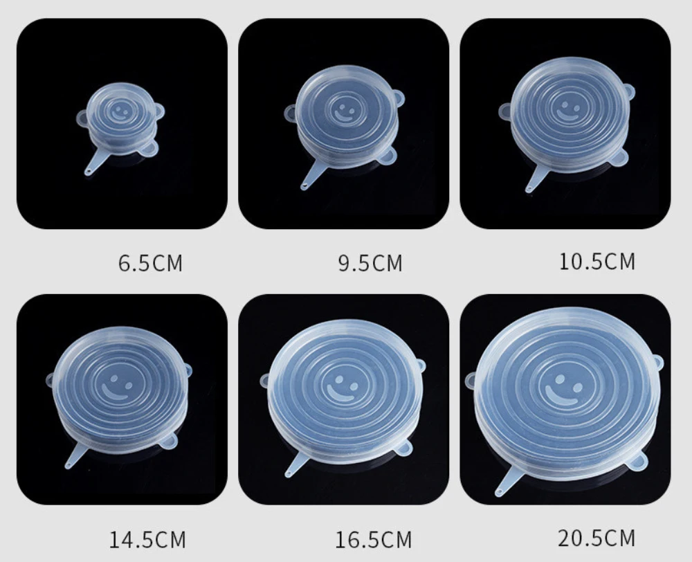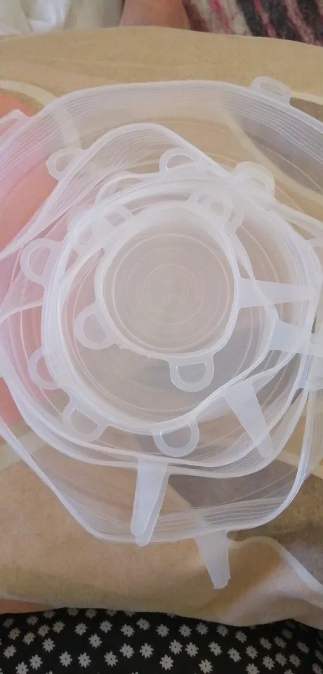 uwielbiam te pokrywki. są elastyczne, dobrze przykrywaja każde naczynie. dzięki różnym rozmiarom można dopasować do danego naczynia.