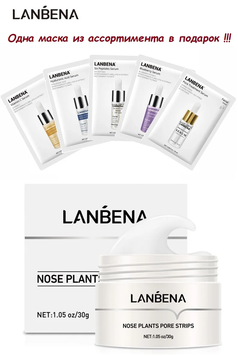 Белая маска Lanbena от черных точек, полоски 60шт, 30 г + ПОДАРОК одна маска с сывороткой для лица из ассортимента