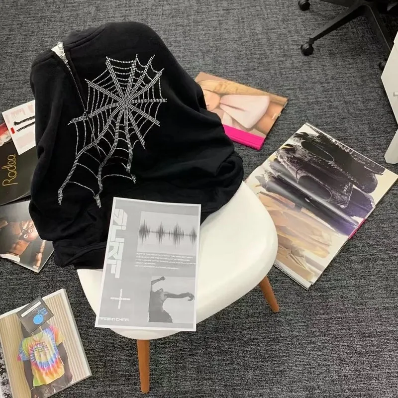Готическая стразы, пауковая сеть, теплая стразы, толстовка на молни...