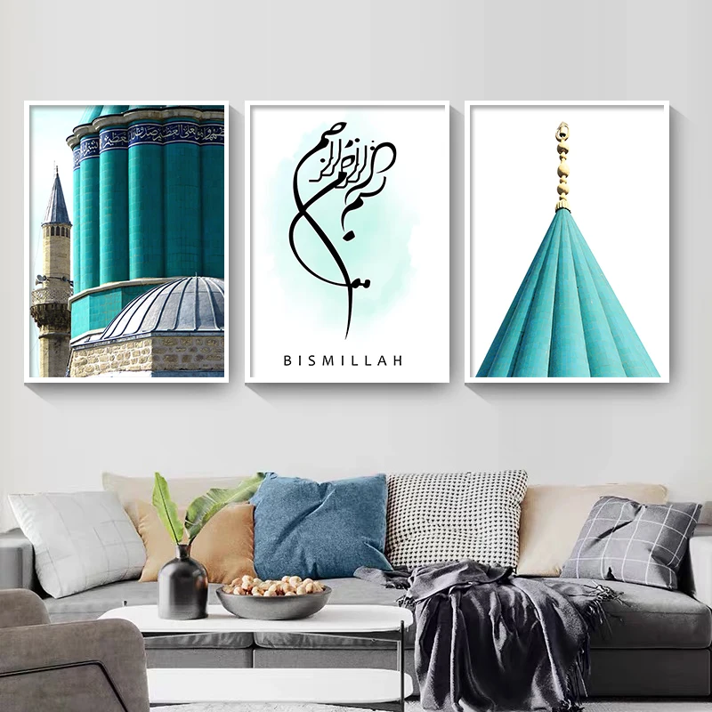 Мусульманские мусульманские плакаты и принты, синие строительные цв...