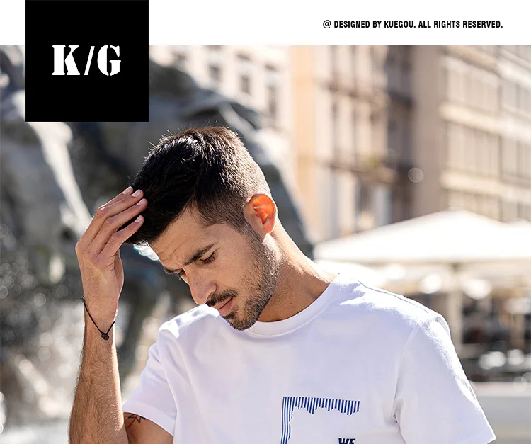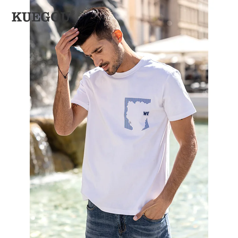 Мужская хлопковая футболка KUEGOU, летняя футболка с коротким рукав...