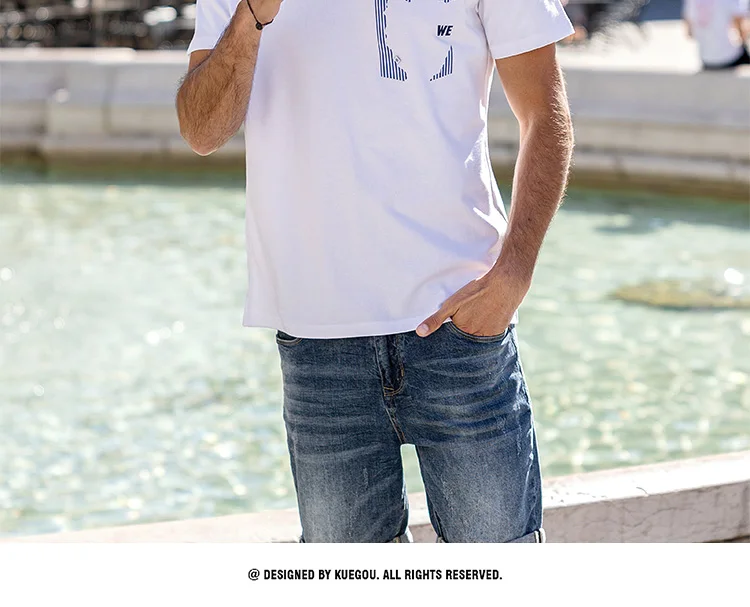 Футболка KUEGOU мужская с принтом, тенниска из 100% хлопка с коротк...