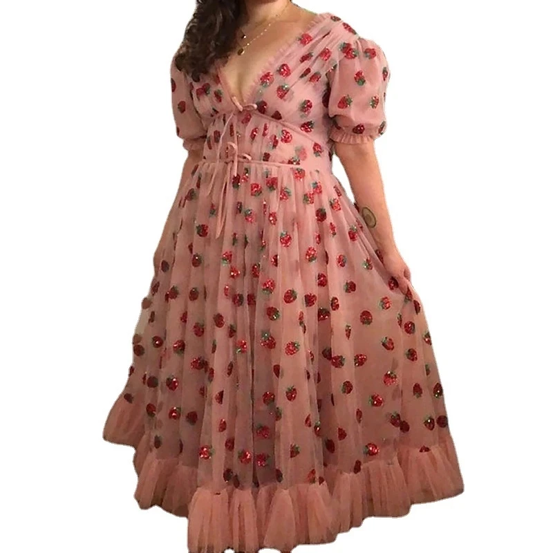 Женское платье с V-образным вырезом, розовое элегантное Сетчатое пл...
