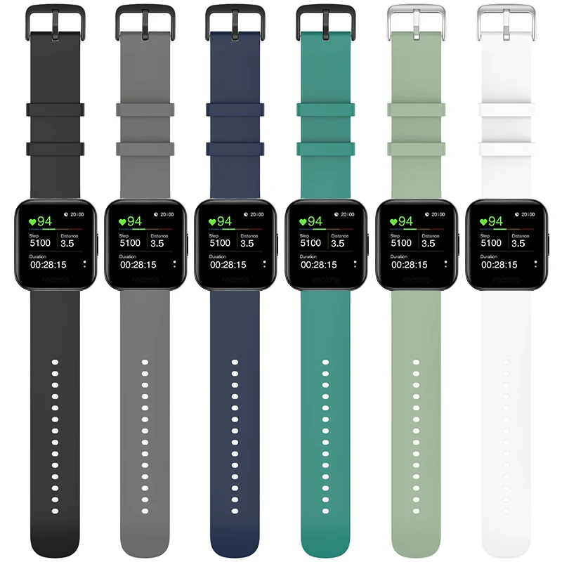 Ремешок силиконовый для наручных часов Realme, сменный спортивный браслет для смарт-часов, разные цвета, аксессуары для часов, 20 мм