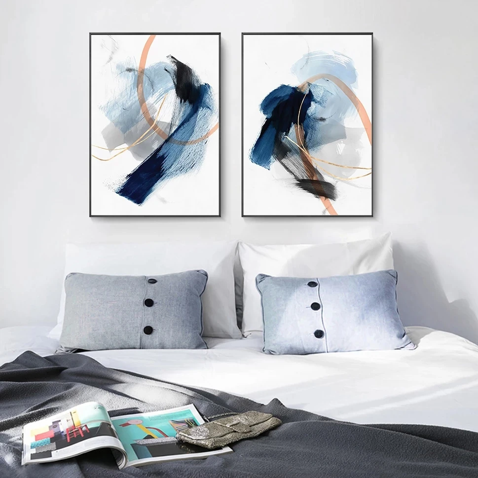Современная абстракция синяя нарисованные эскиз холст для живописи ...
