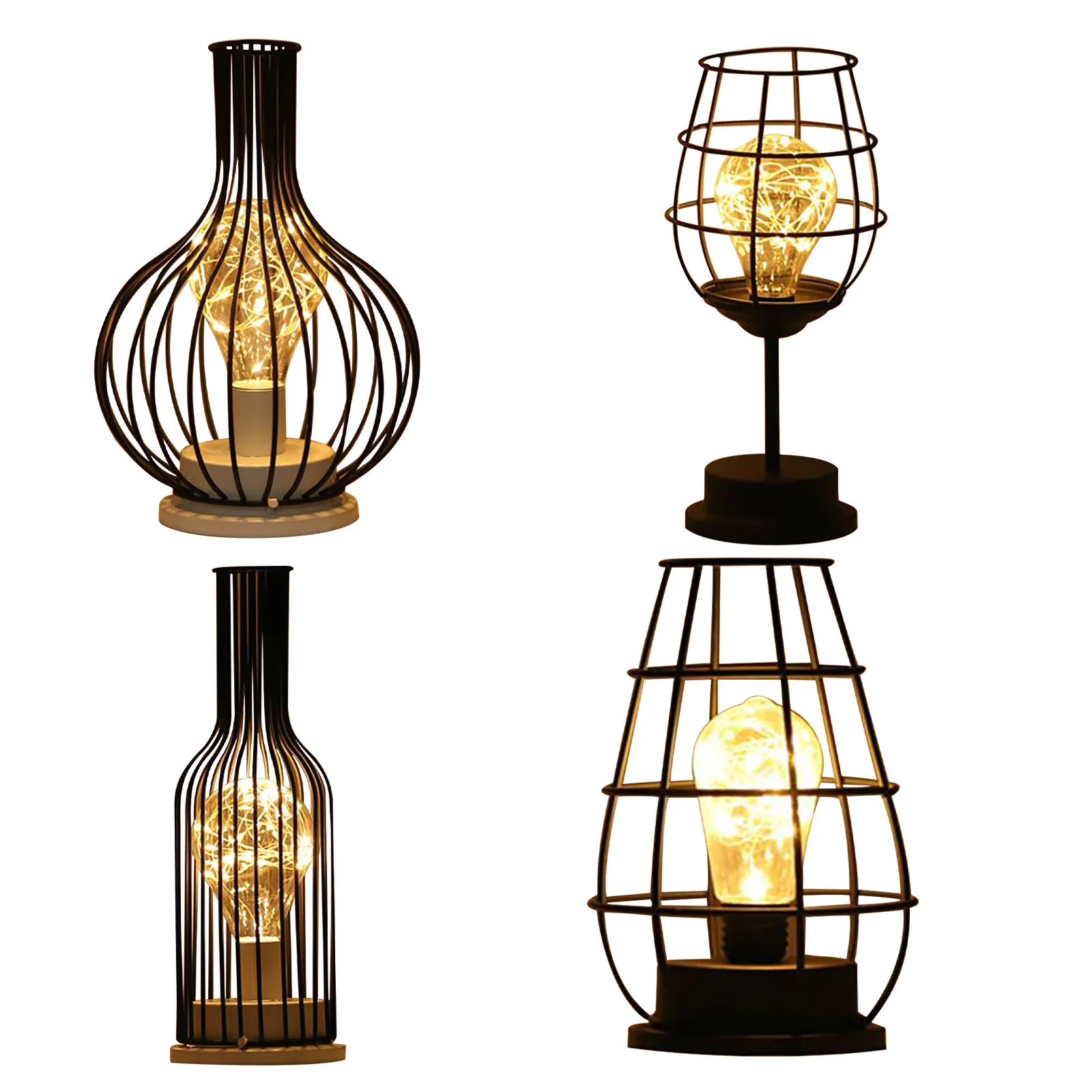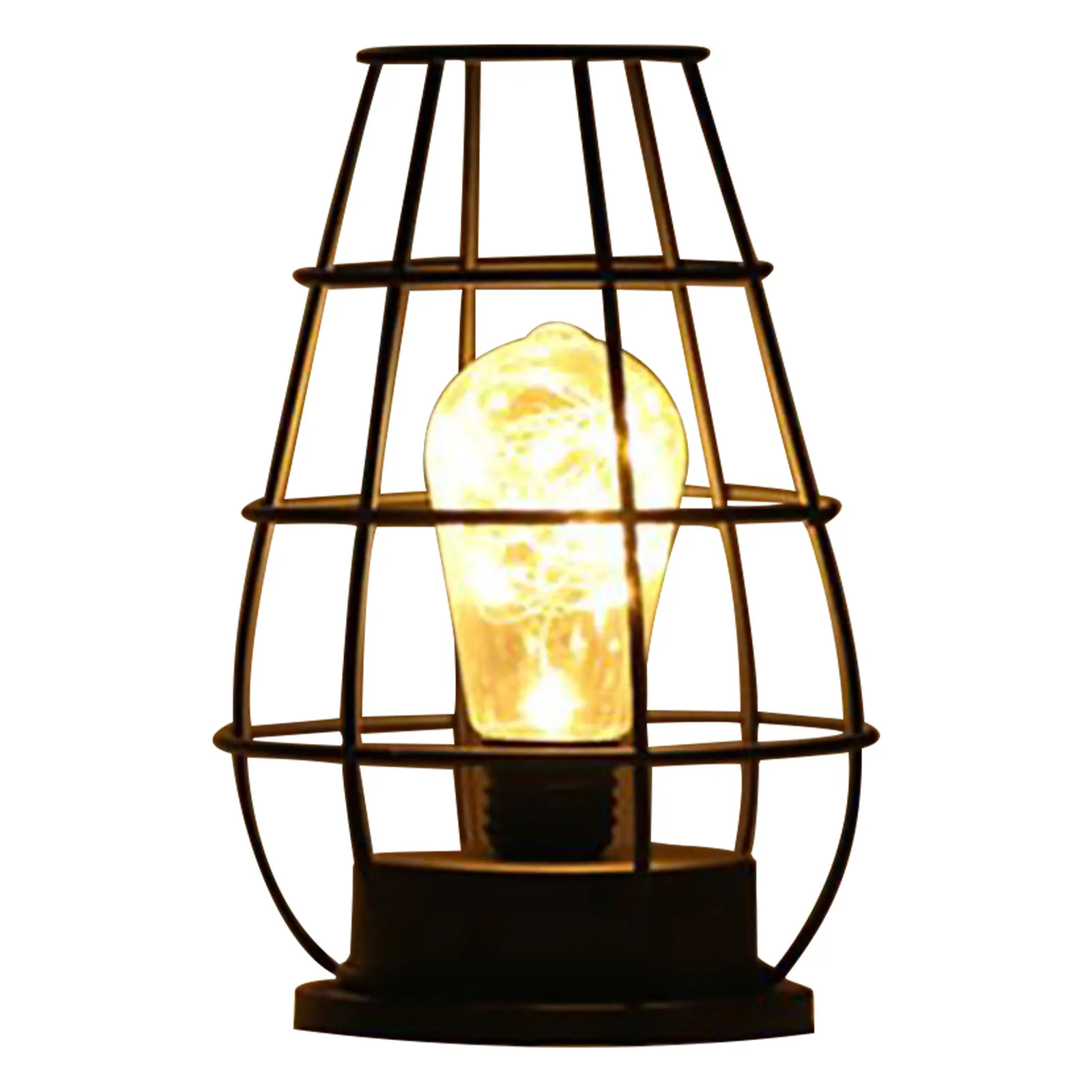 Винтажная настольная лампа, ночник черного цвета в стиле индастриал, металлическая корзина из проволоки, светильник в стиле клетки, настольное освещение для прикроватного декора
