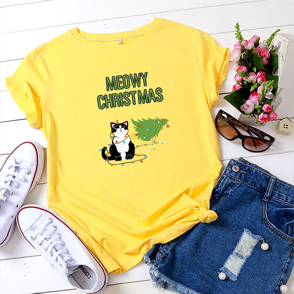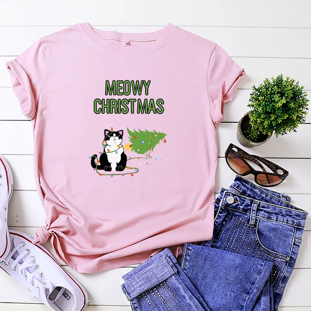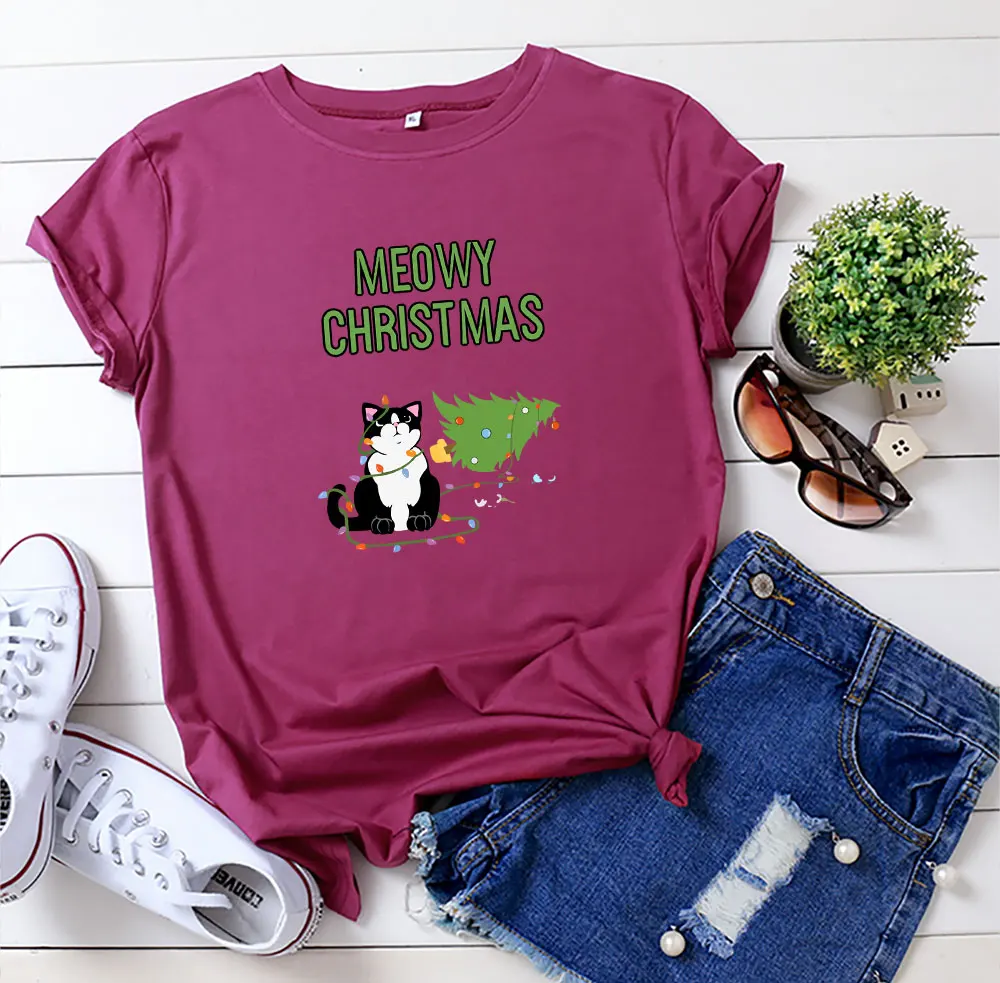 Летняя женская рубашка из 100% хлопка, футболка с рождественской ал...