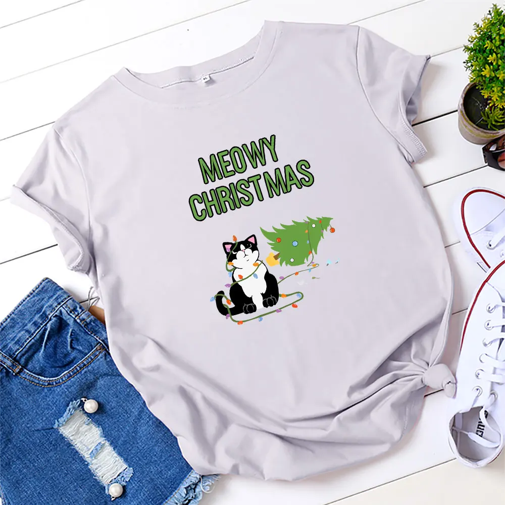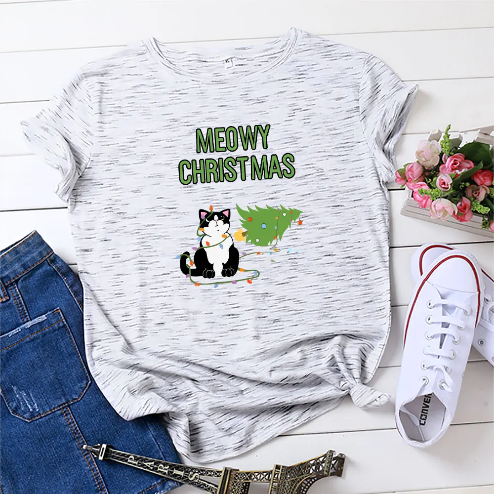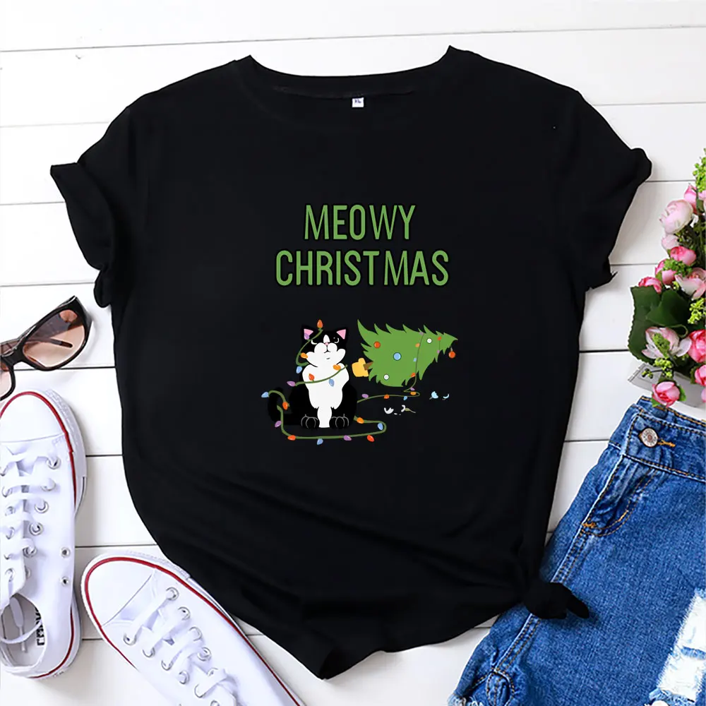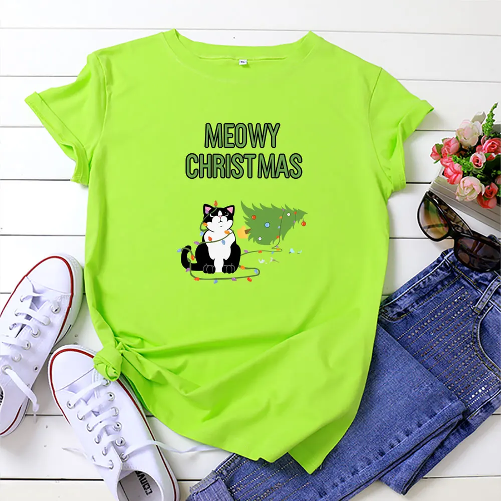 Летняя женская рубашка из 100% хлопка, футболка с рождественской ал...