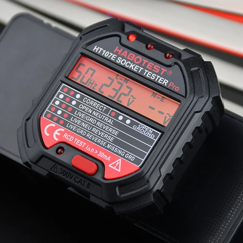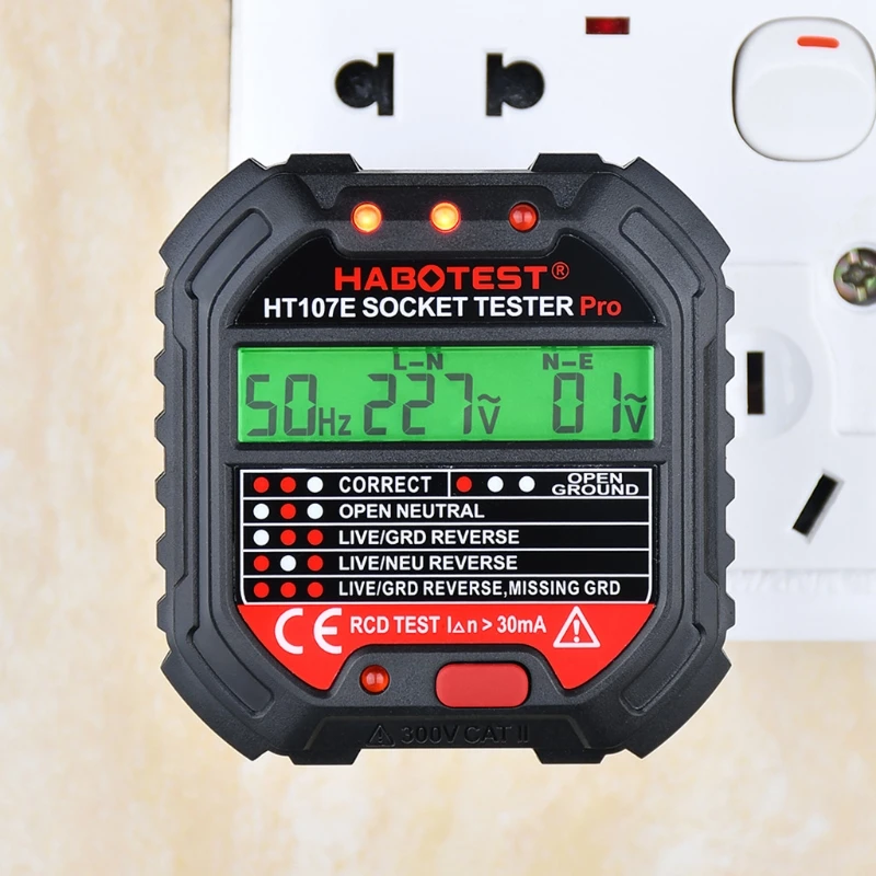 Тестер для розеток HT107 Pro, тестер напряжения RCD 30 мА, детектор розеток, вилка стандарта Великобритании, ЕС, заземление, нулевая линия, вилка, проверка полярности фазы на утечку