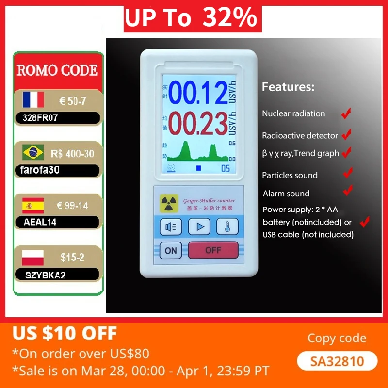 Счетчик Гейгера, персональный дозиметр для измерения уровня Beta, Gamma радиации с ЖК-дисплеем