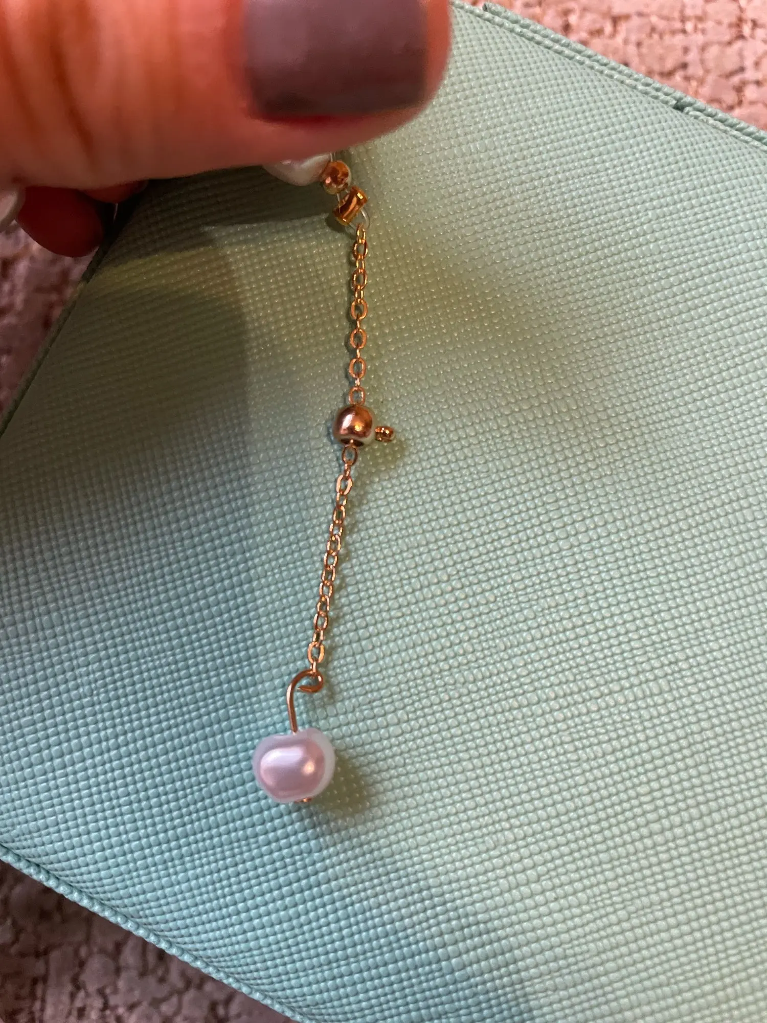 тогл очень дешевый, плохого качества. бусина зеленая закреплена как будто крепили левой рукой или ребёнок... имитация жемчуга красивая...