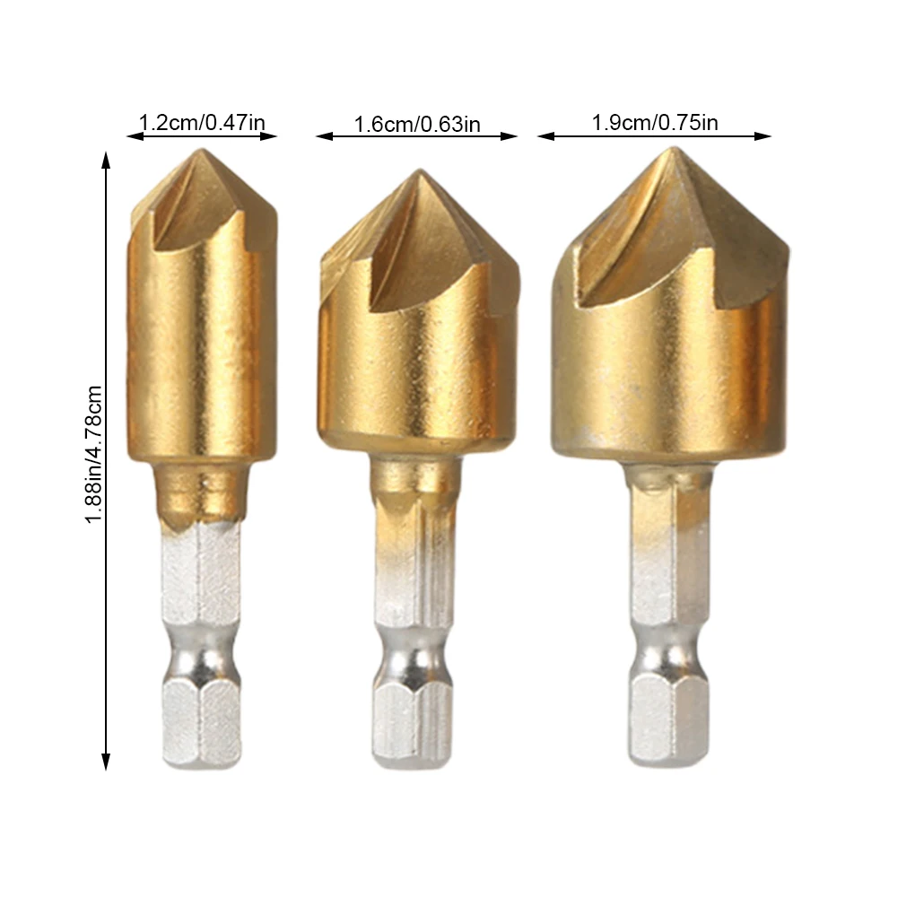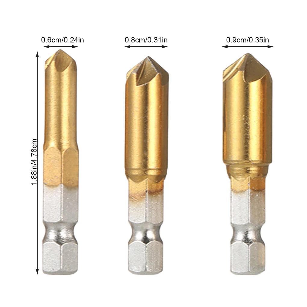 3 шт., шестигранная Зенковка для дерева, металла, Быстросменные сверла, инструменты, 3 шт., шестигранный хвостовик, углеродистая сталь